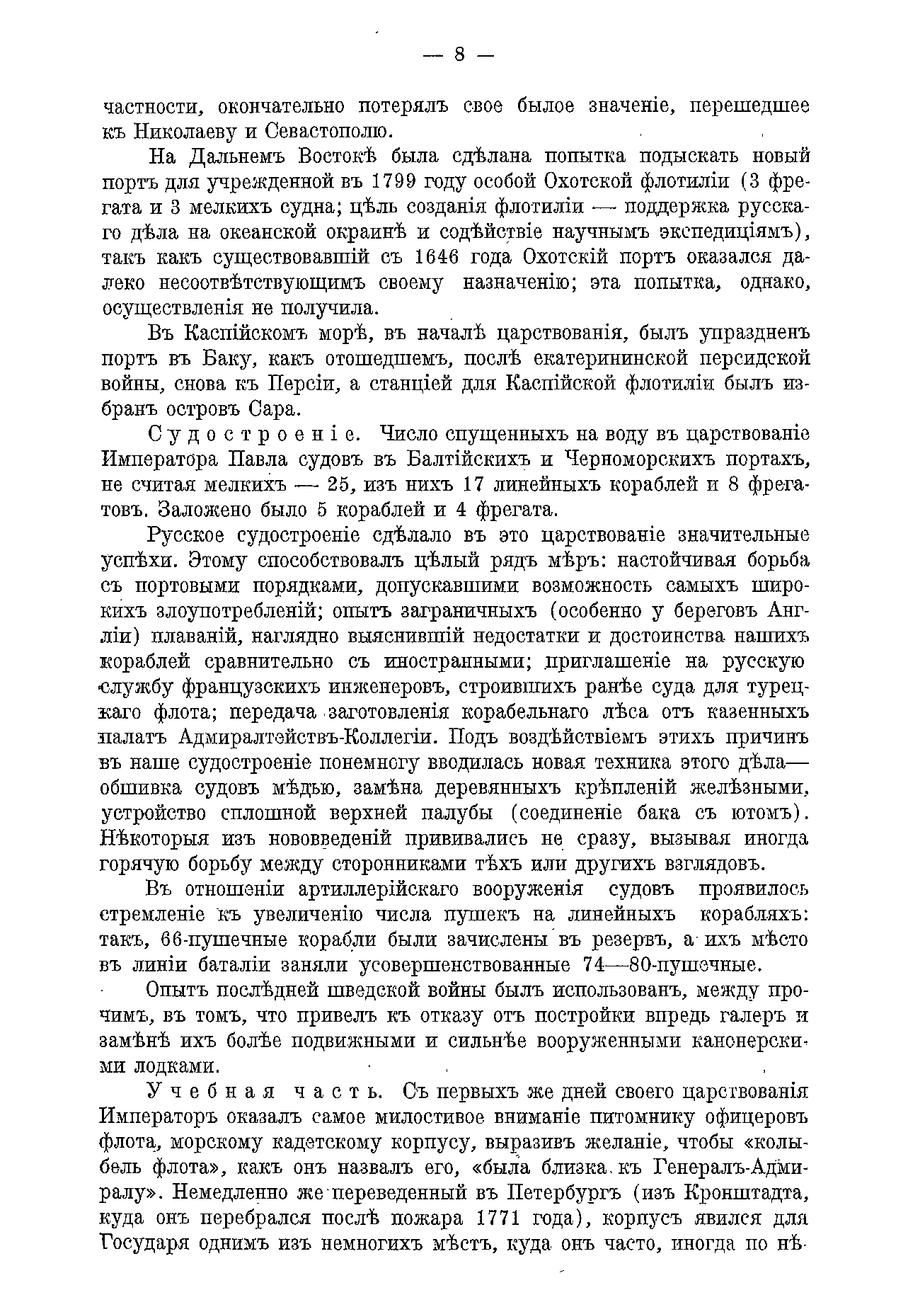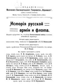 «История» рисует картину постепенного развития русского военного дела. С особым вниманием издание останавливается на наиболее выдающихся боевых эпизодах, интересуясь в тоже время организацией, бытом, вооружением и боевой подготовкой наших войск, в связи с политической жизнью государства. «История русской армии и флота» по своим размерам ( до 170 печатных листов) значительно превосходит прежние издания этого рода. Снабженная большим количеством иллюстраций и фотографий, она предназначалась для просвещения и русского офицерства, и русского общества.