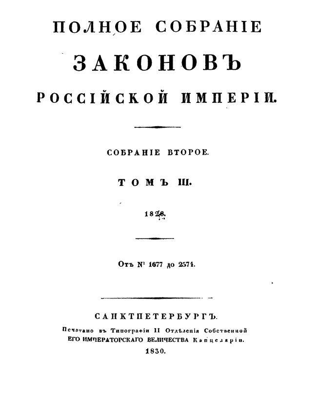 Полное собрание законов Российской Империи. Собрание Второе. Том III