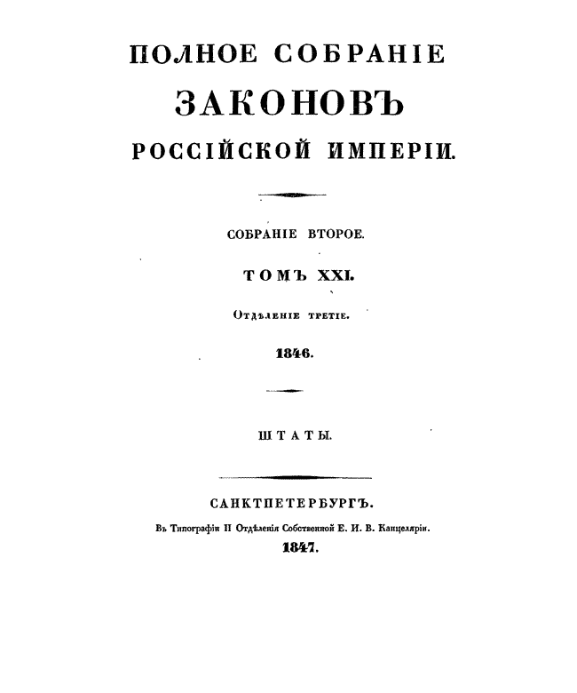 Полное собрание законов Российской Империи. Собрание Второе. Том XXI. Отделение 3