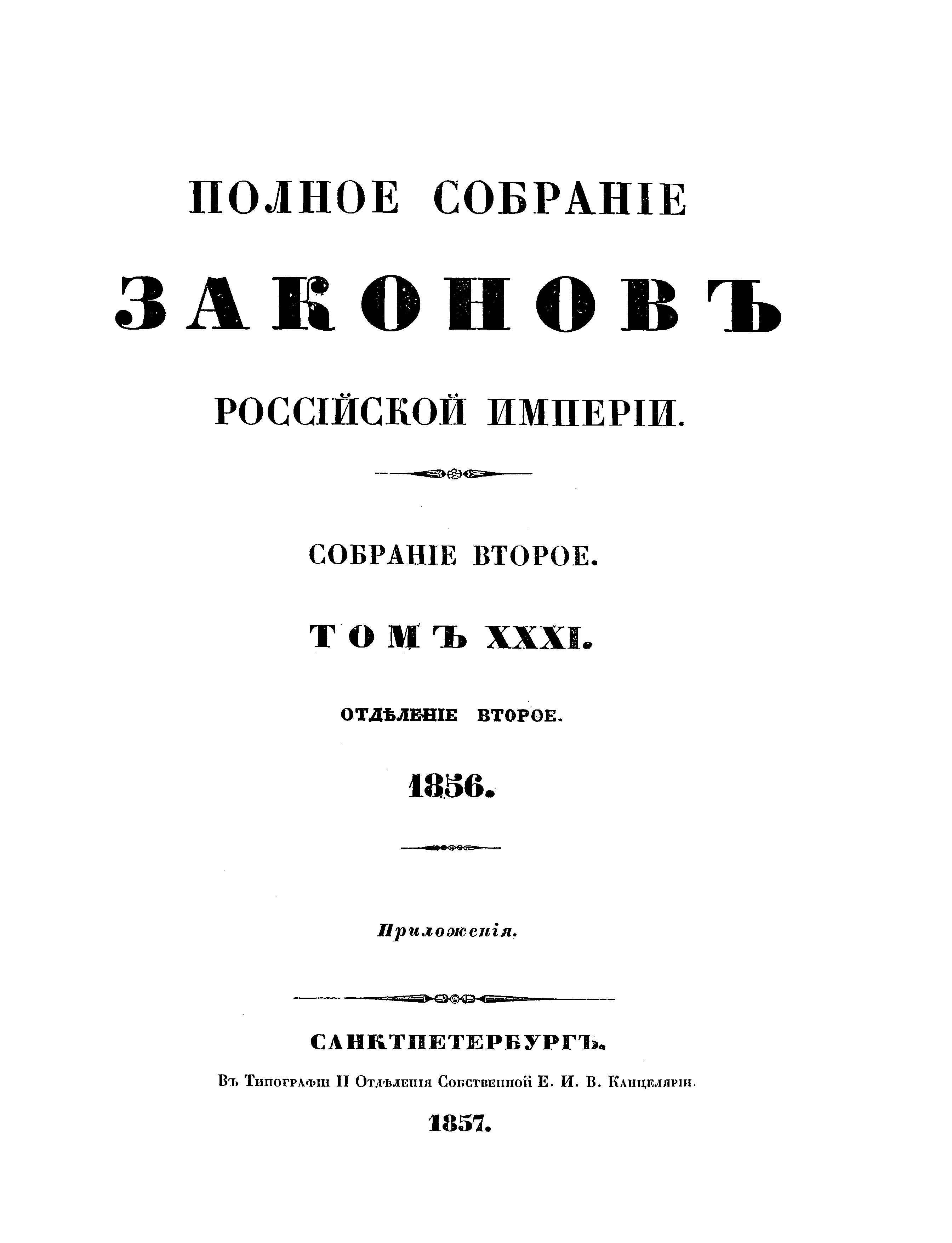 Полное собрание законов Российской Империи. Собрание Второе. Том XXXI. Отделение 2