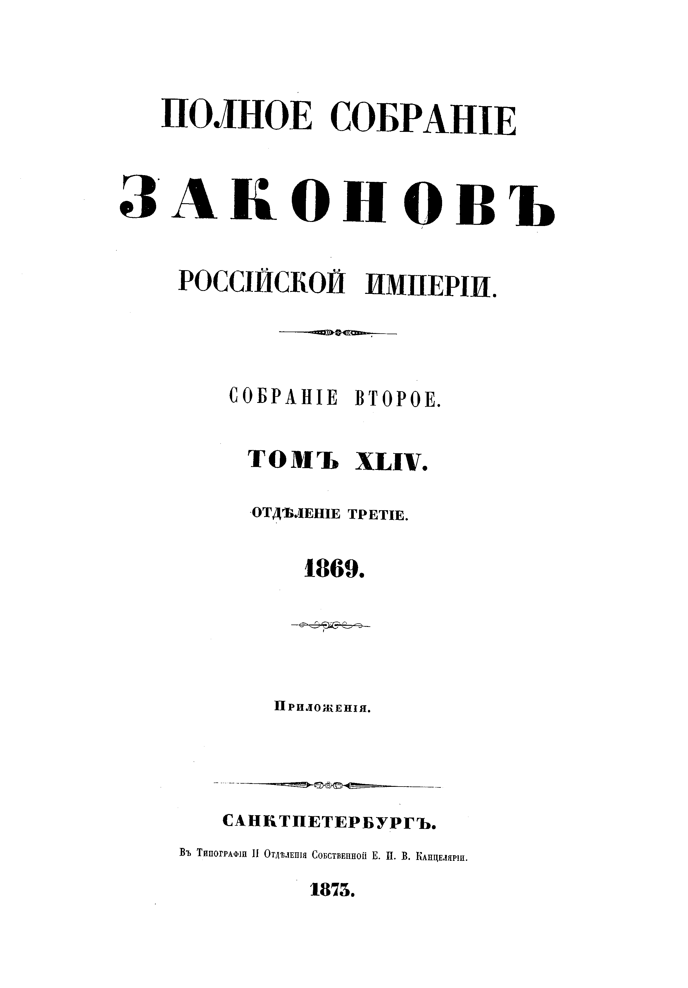 Полное собрание законов Российской Империи. Собрание Второе. Том XLIV. Отделение 3
