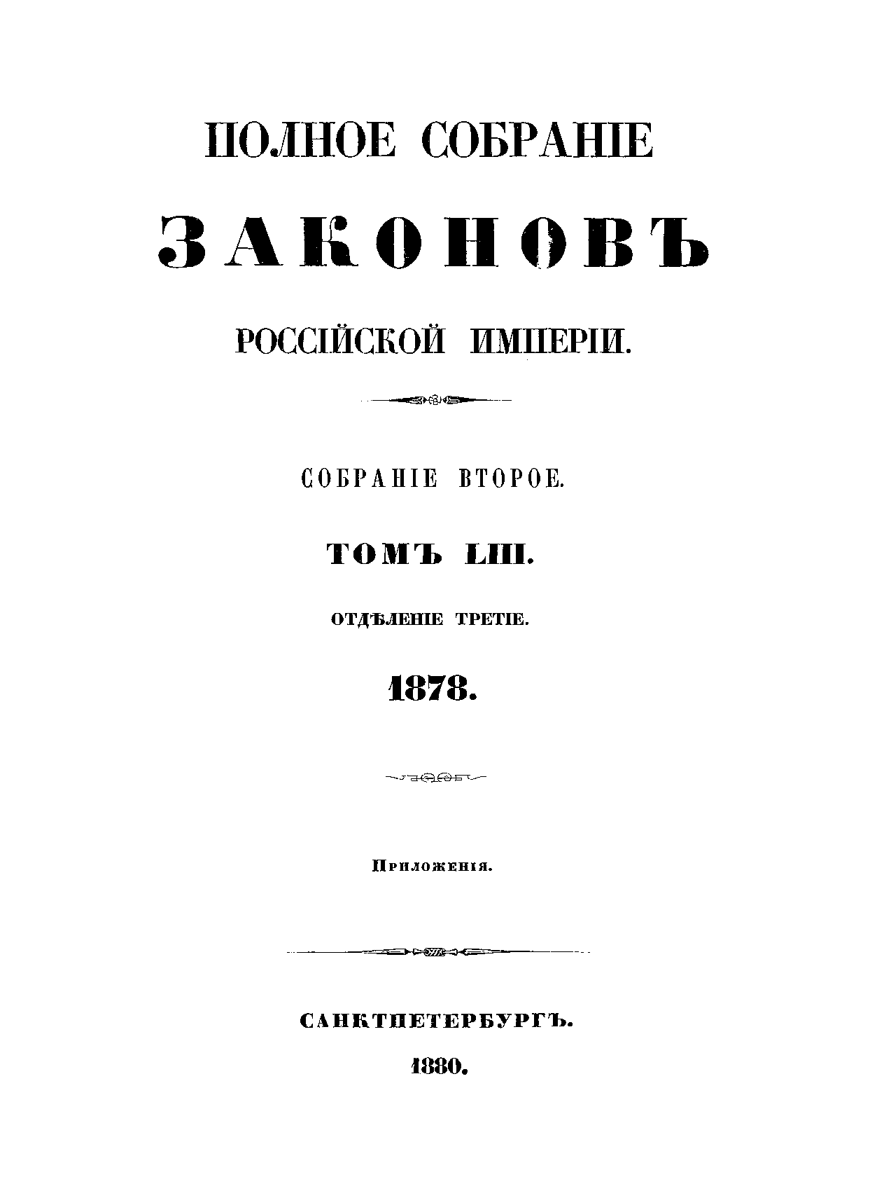 Полное собрание законов Российской Империи. Собрание Второе. Том LIII. Отделение 3