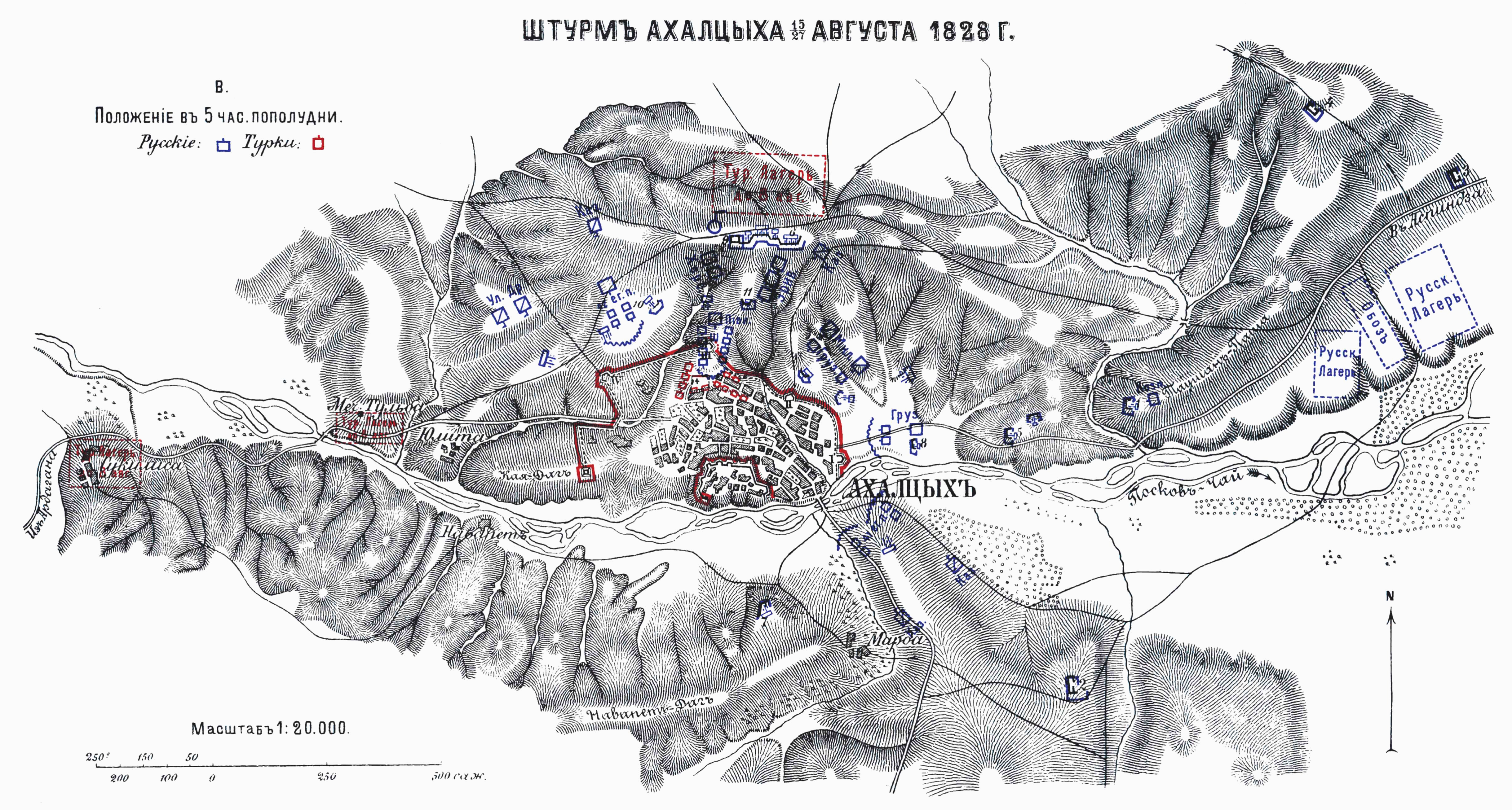 Штурм Ахалцыха 15/27 августа 1828 года. B. Положение в 5 часов пополудни