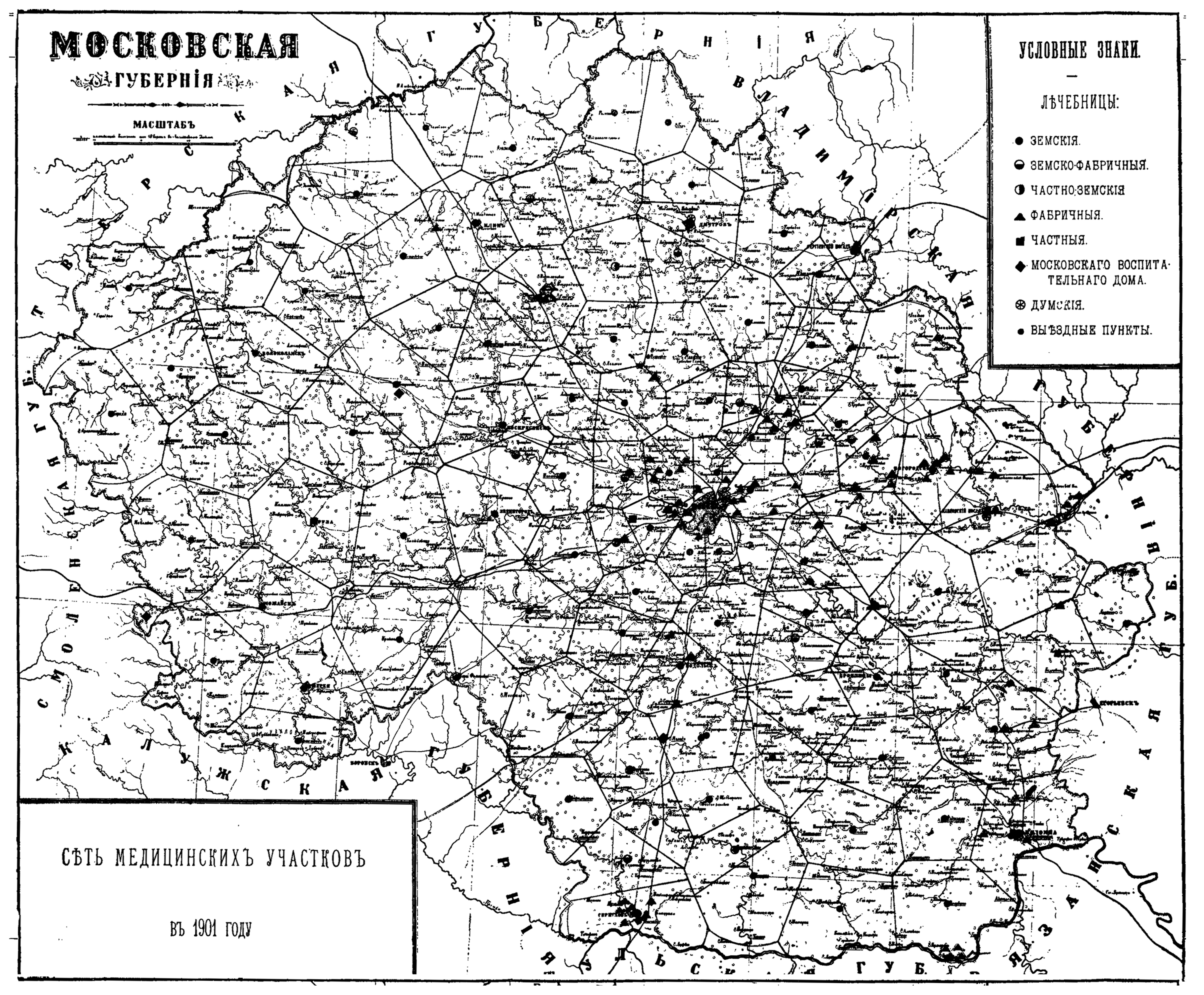Московская губерния. Сеть медицинских участков в 1901 году