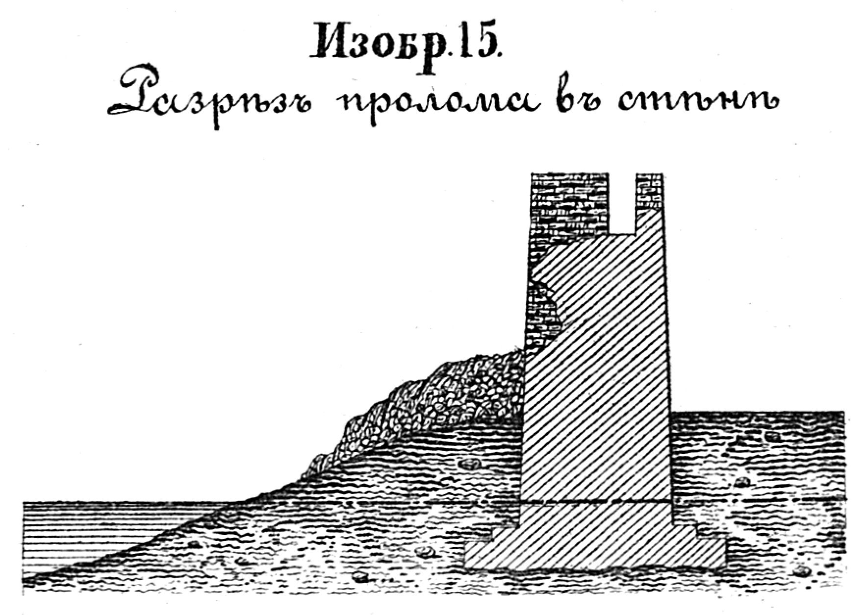 Осада крепости Нотебург в 1702 году. Разрез разлома в стене. Изобр.15