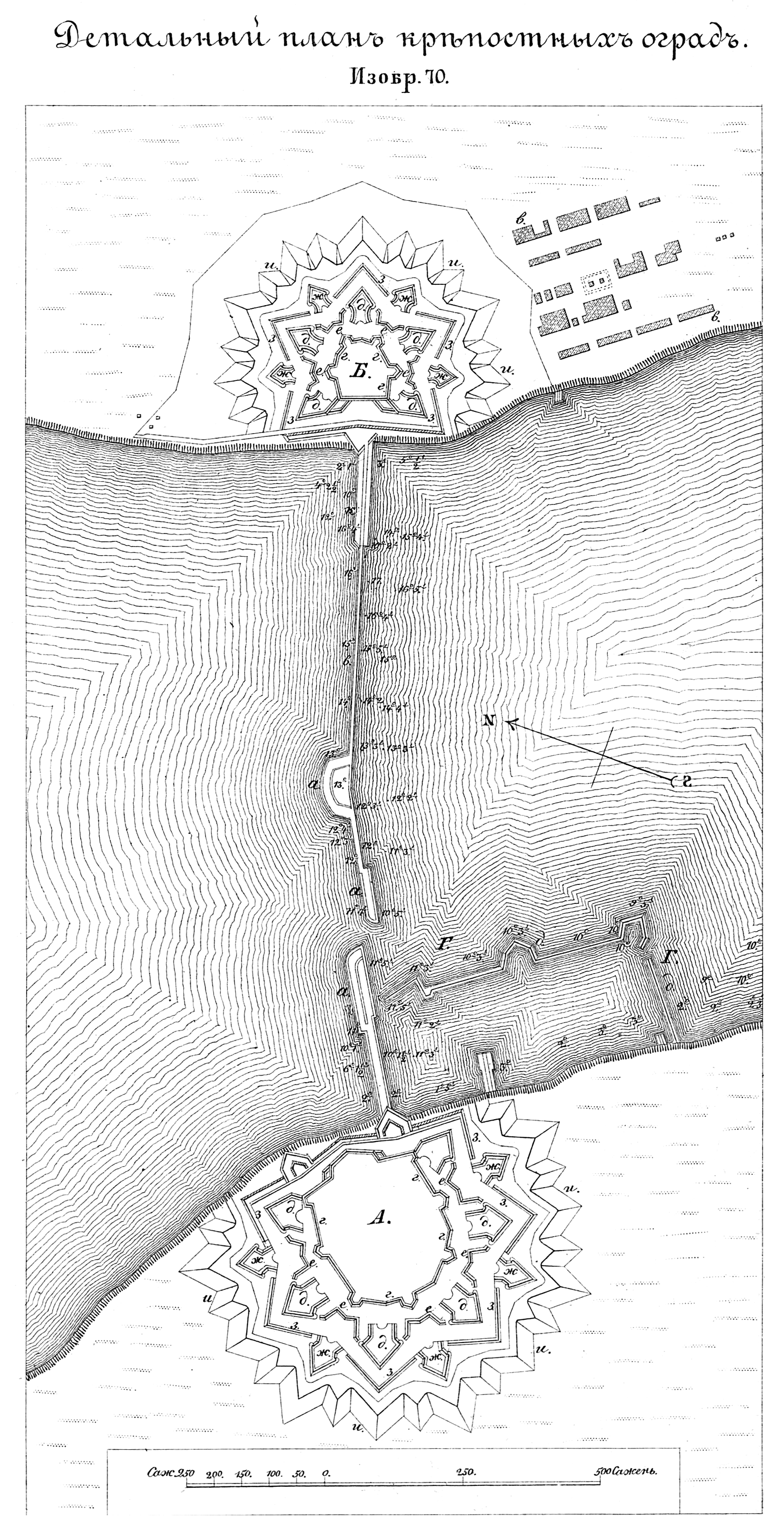 Порт и крепостеь при Рогервике по проекту 1723 года. Детальный план крепостных оград