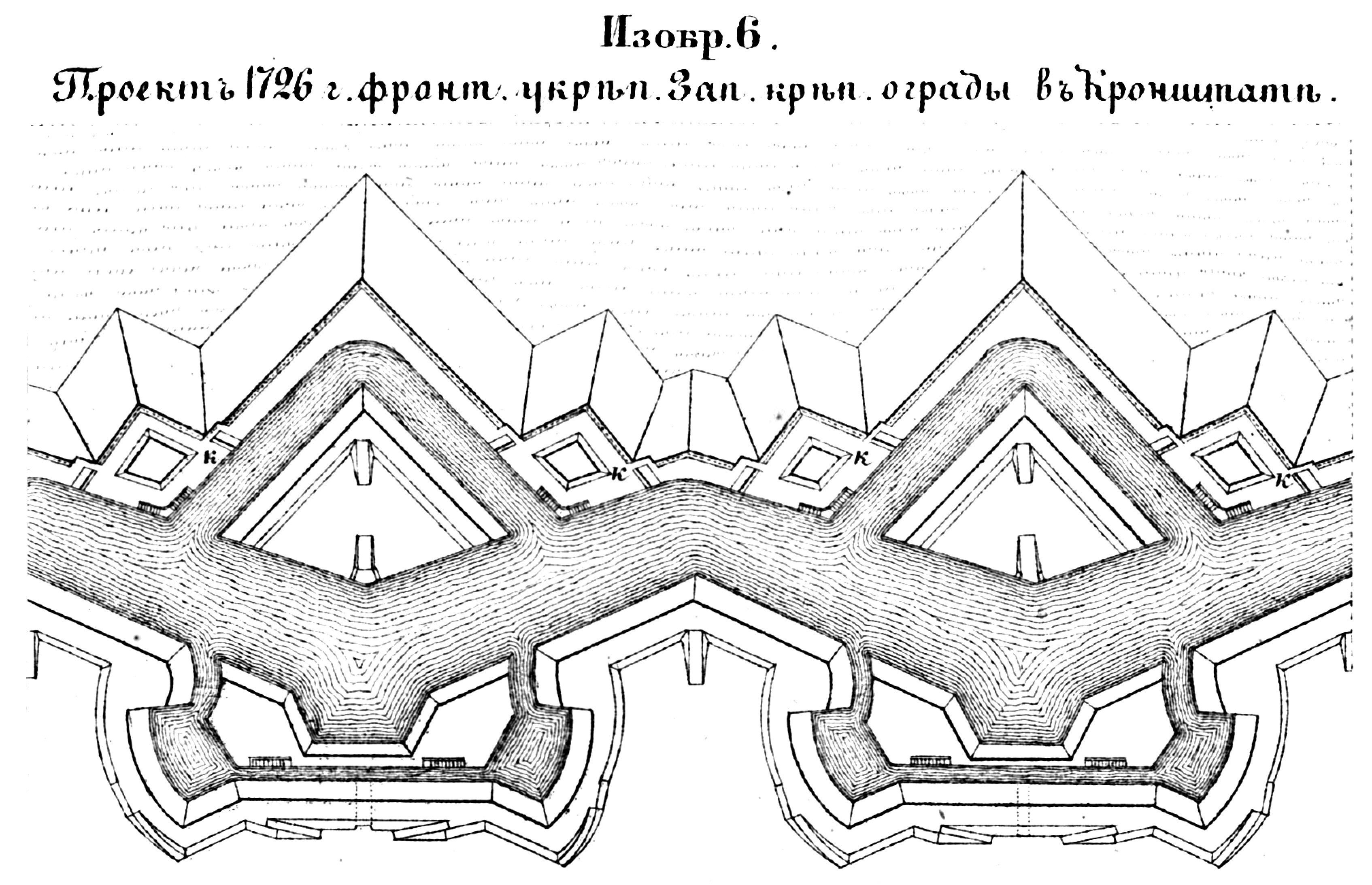 Способы укрепления. Изобр.6. Проект 1726 года фронтального укрепления Западной ограды в Кронштадте