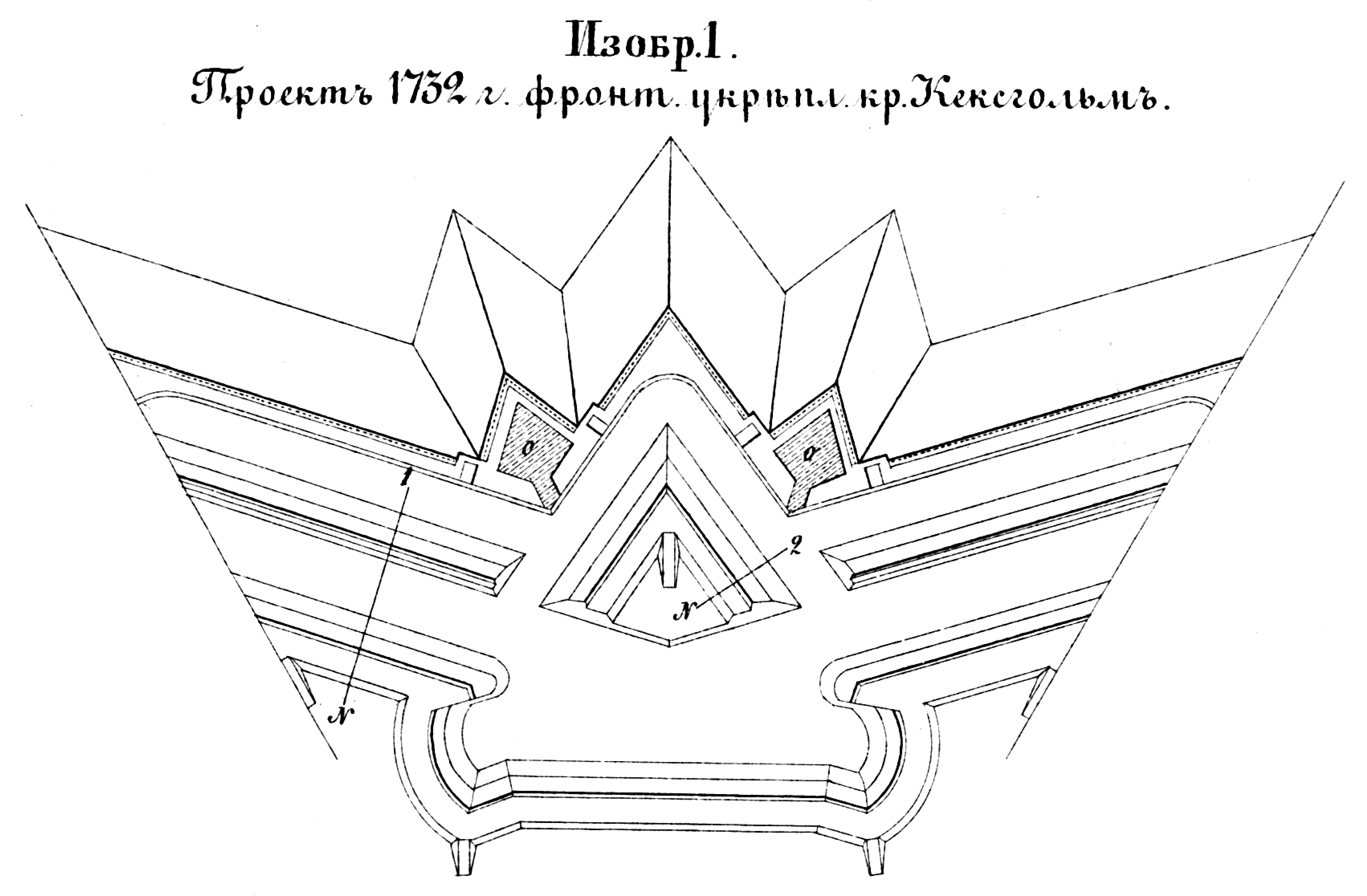 Способы укрепления. Изобр.1. Проект 1732 года фронтального укрепления крепости Кексгольм