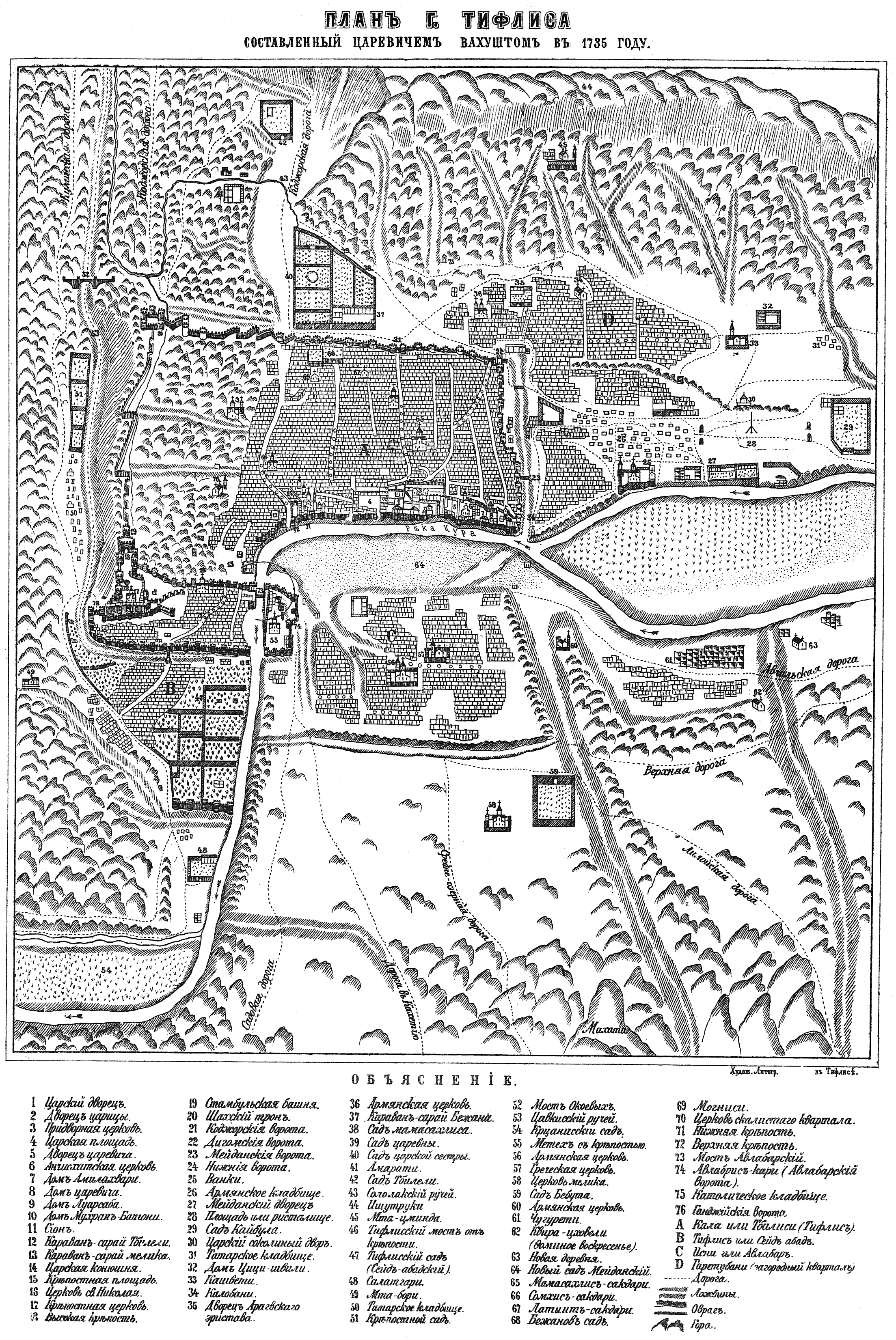 Город Тифлис, план составлен Царевичем Вахуштом в 1735 году