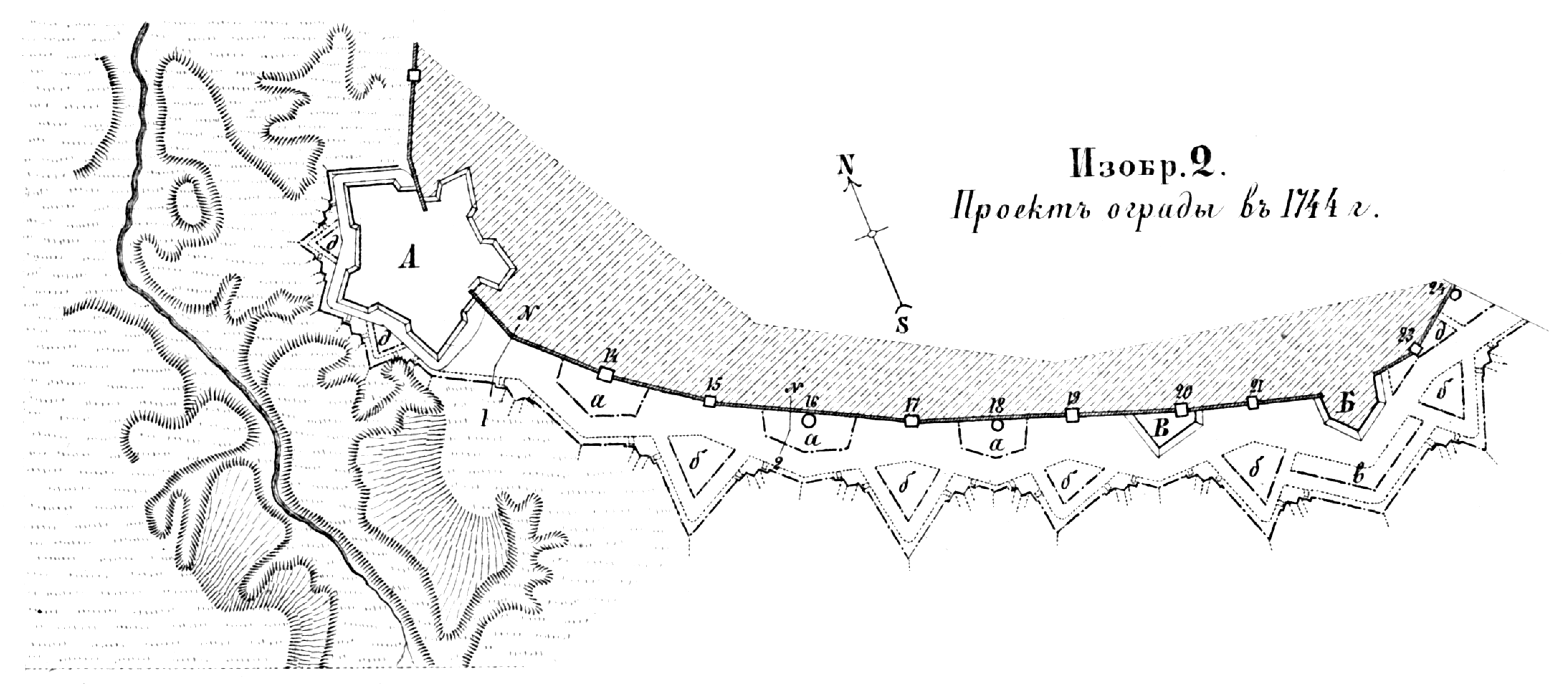План Михайловского укрепления, составленный по показанию рядового Тенгинского полка Гуртового