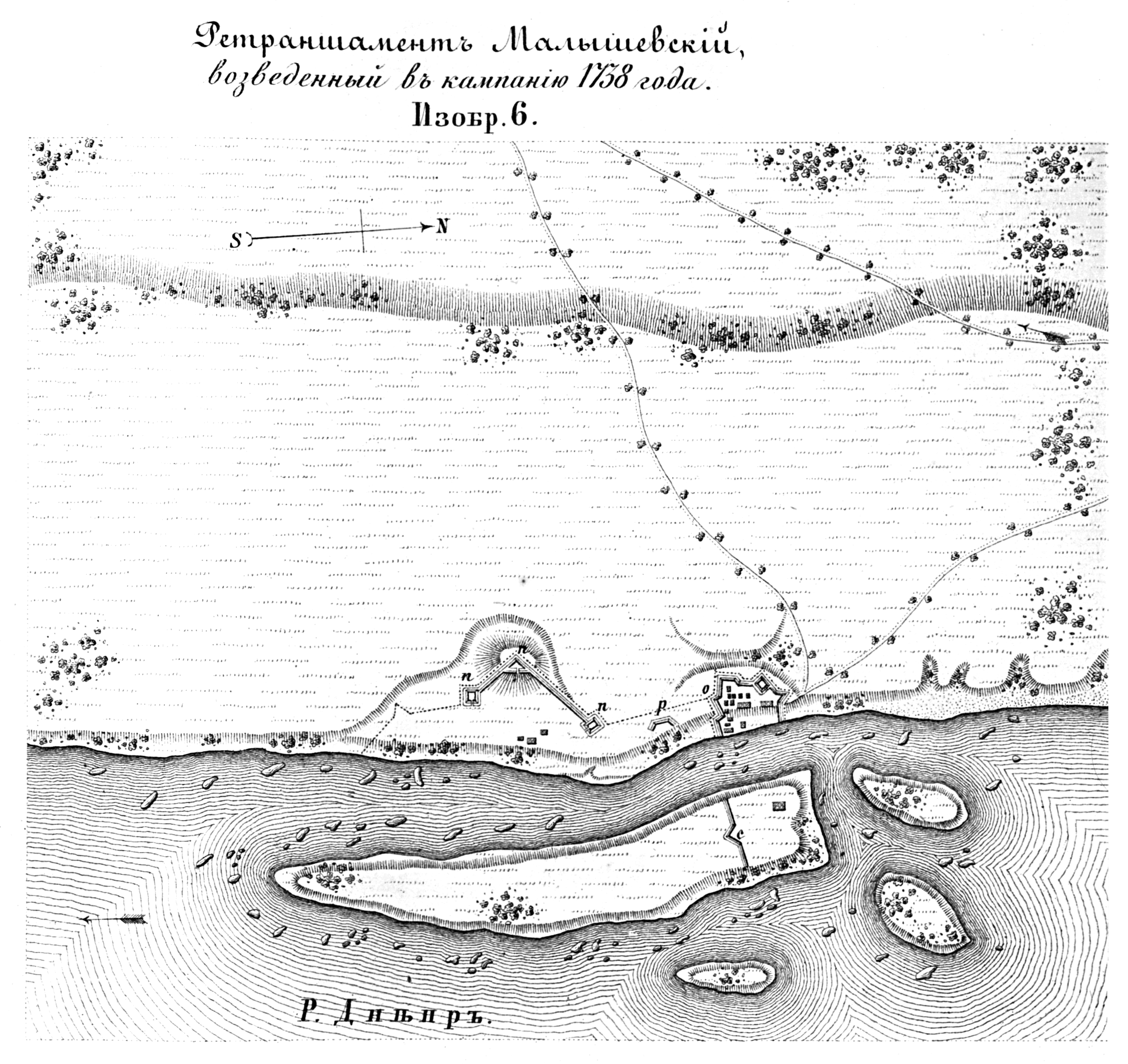 Полевые и временные укрепления. Изобр.6. Ретраншамент Малышевский, возведенный в кампанию 1738 года