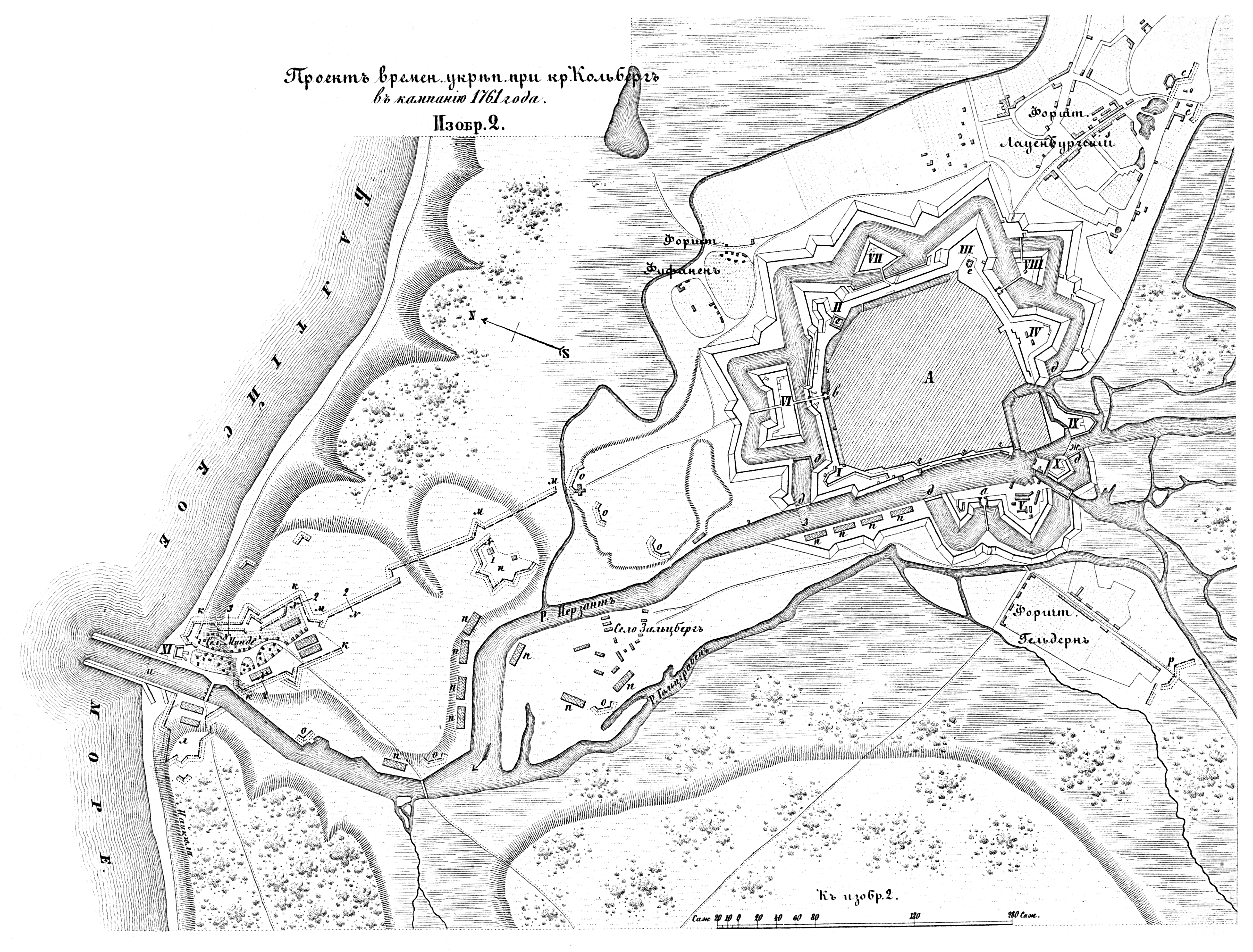 Полевые и временные укрепления. Изобр.2. Проект временного укрепления крепости Кольберг в кампанию 1761 года