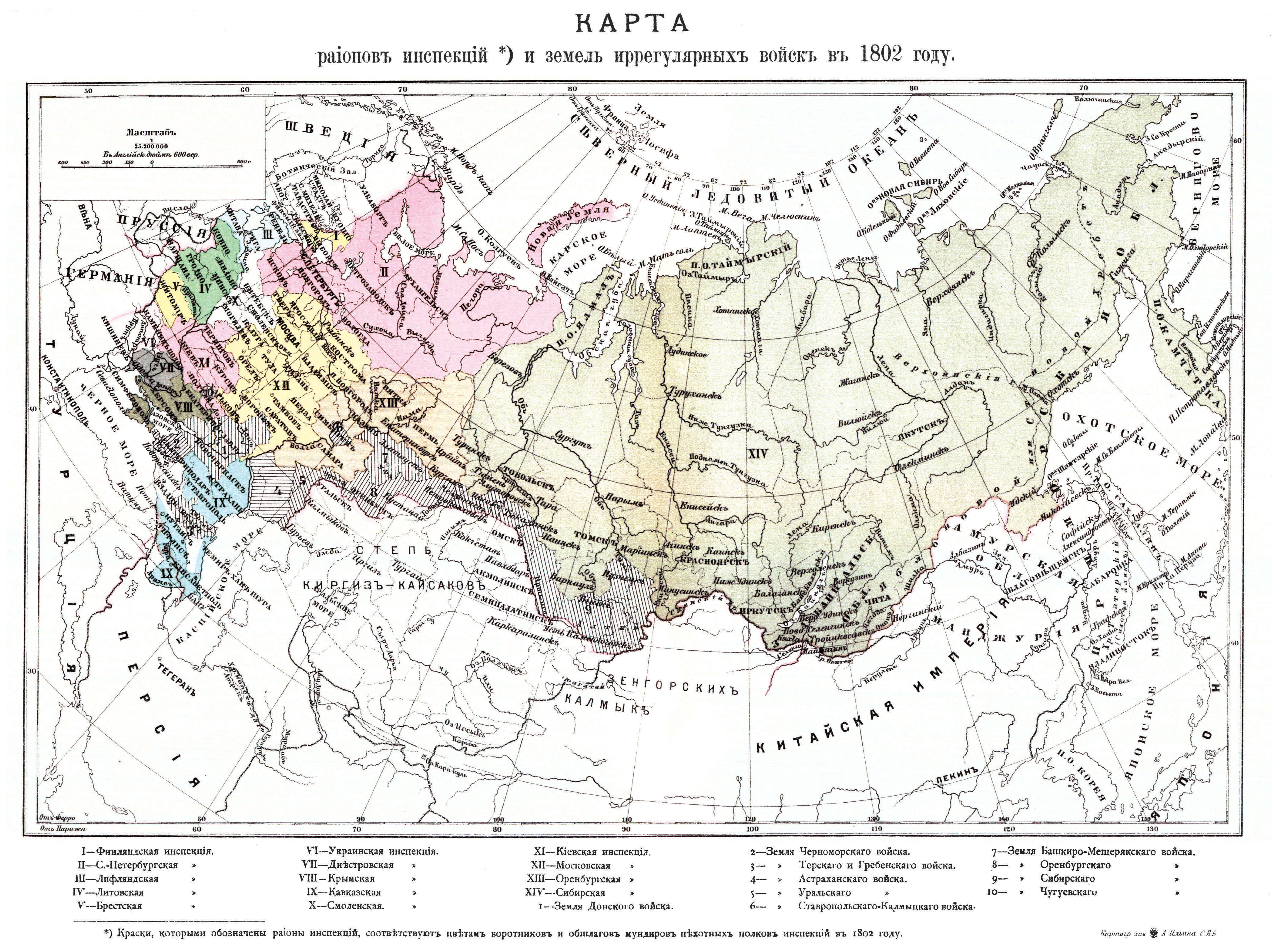 Районы инспекций и земли иррегулярных войск в 1802 году