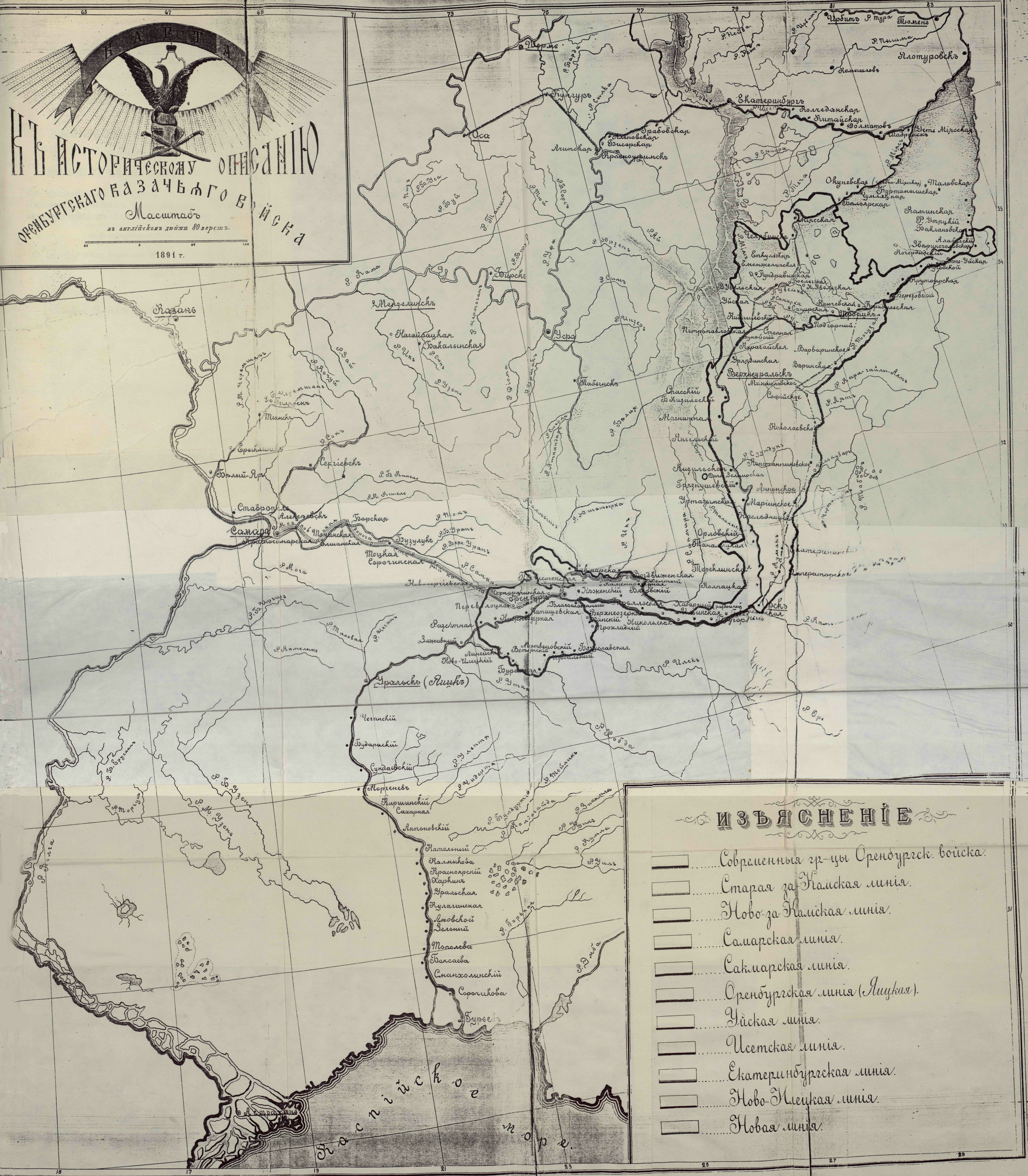 Историко-статистический очерк Оренбургского казачьего войска с приложением статьи о домашнем быте оренбургских казаков, рисунков со знамён и карты
