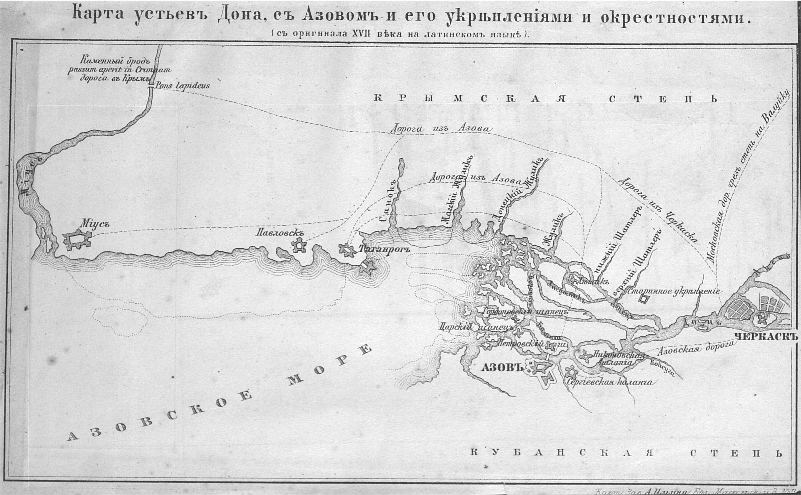 Устье Дона, с Азовом и его укреплениями и окрестностями (с оригинала XVII века на латинском языке)
