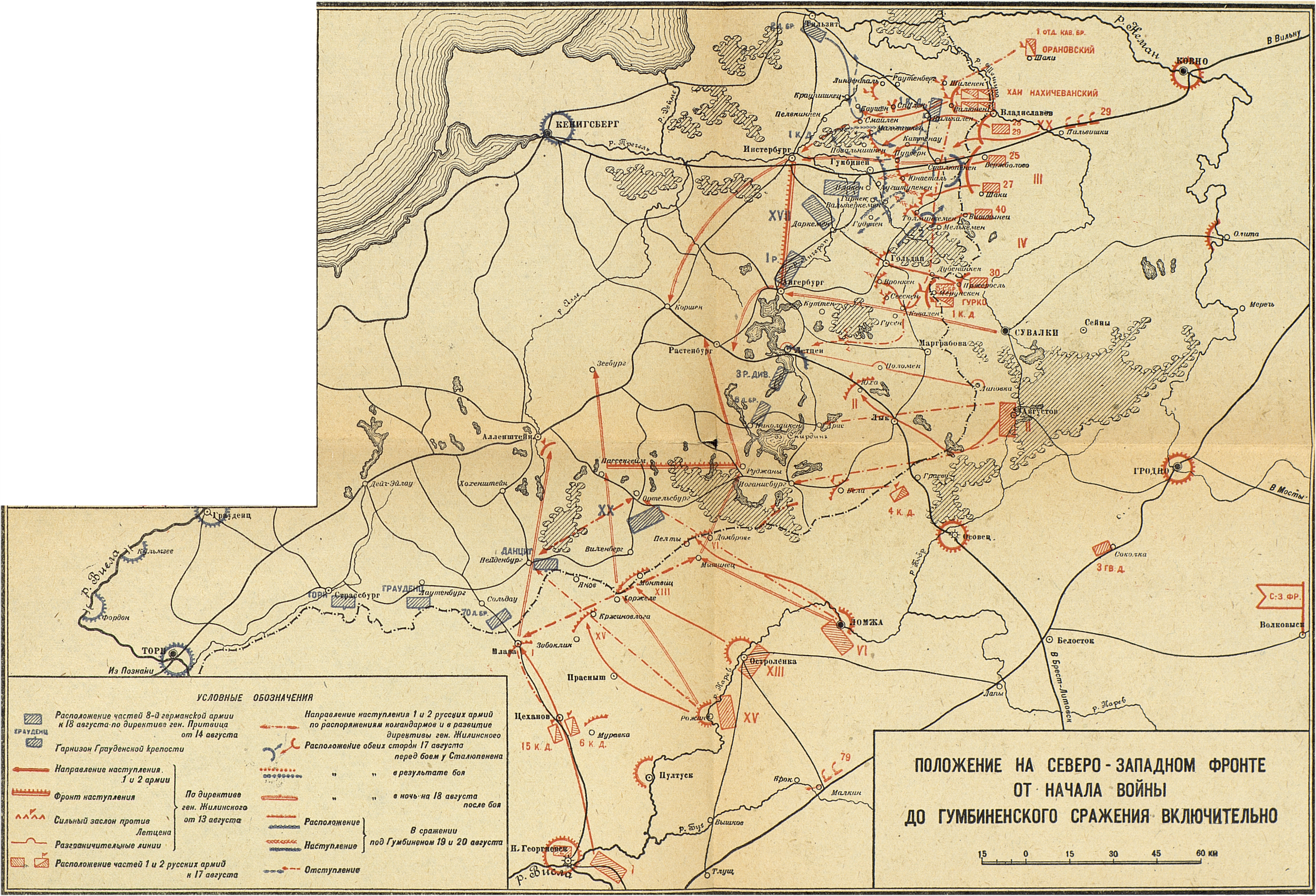 Кампания 1914 года. Русский театр. Восточно-прусская операция. Положение на Северо-западном фронте от начала войны до Гумбиненского сражения включительно
