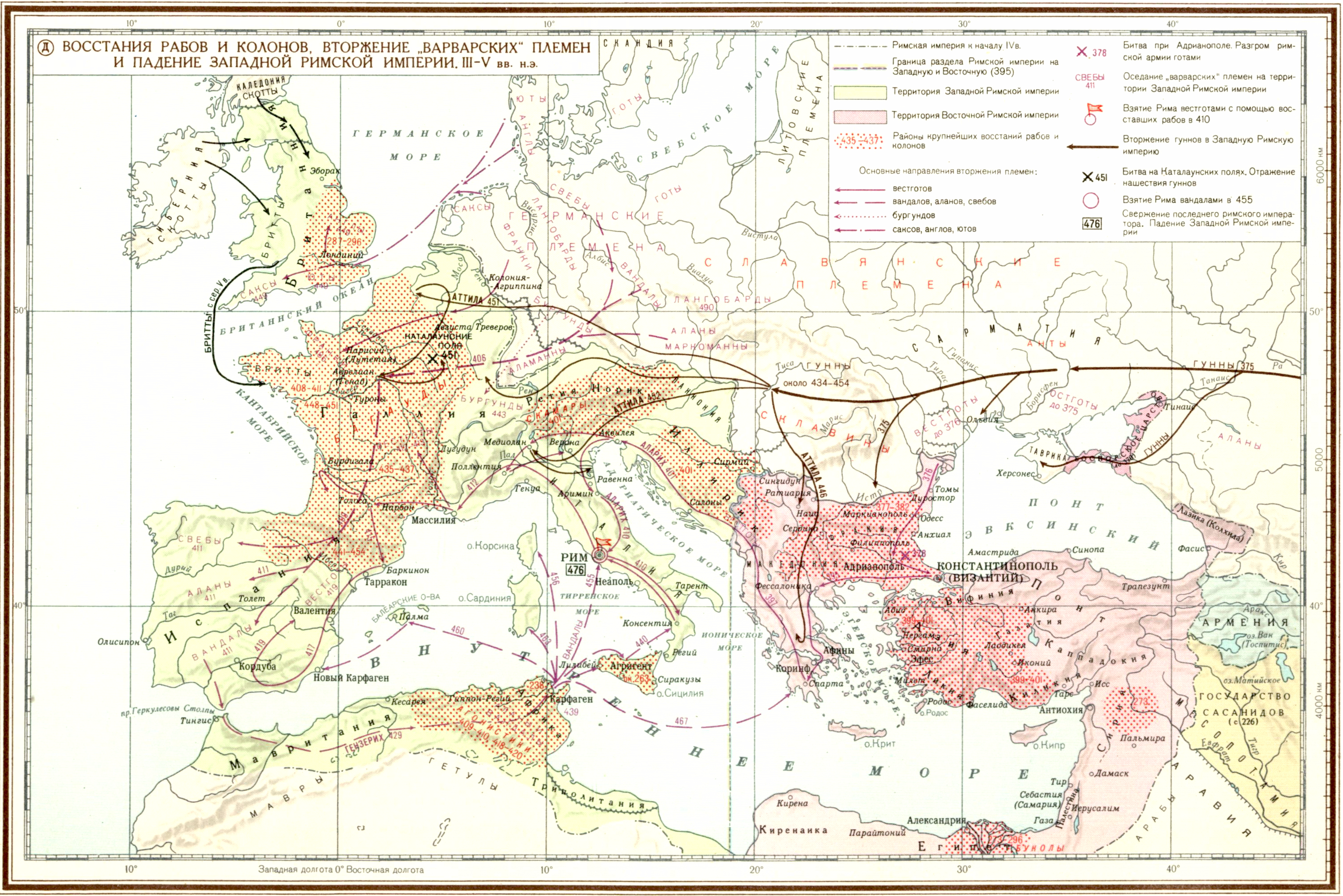 Падение Западной Римской империи III-V вв н.э. (Д)Восстание рабов и колонов, вторжение "варварских" племен и падение Западной Римской Империи III-V вв н.э.