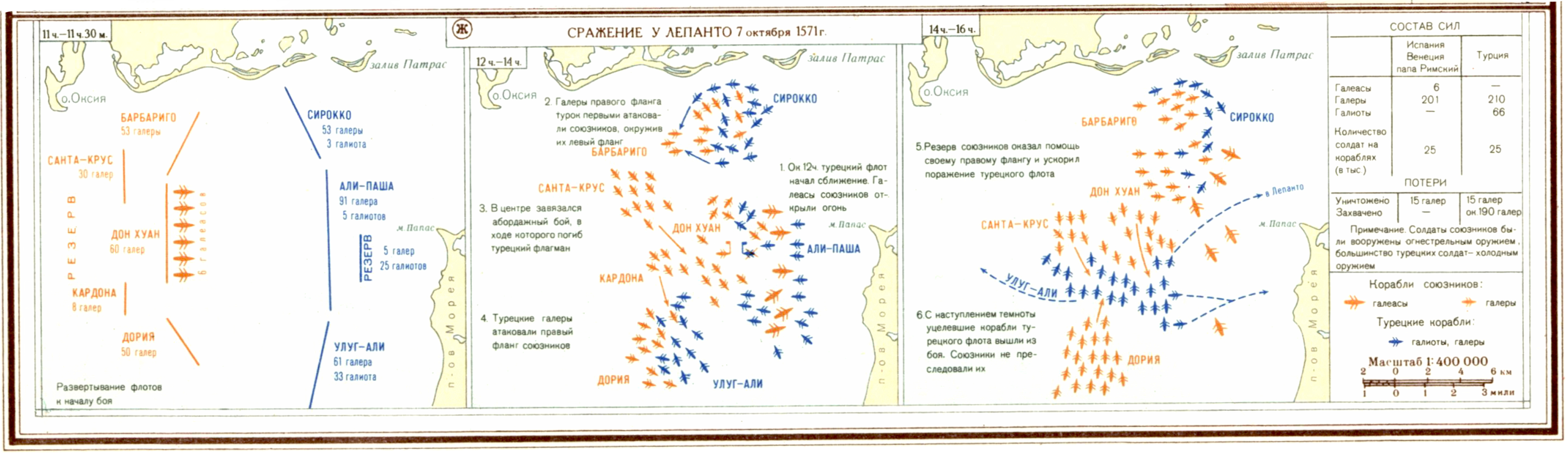 Развитие мореплавания и борьба за морские торговые пути в средние века. (Ж) Сражение у Лепанто 7 октября 1571 г.