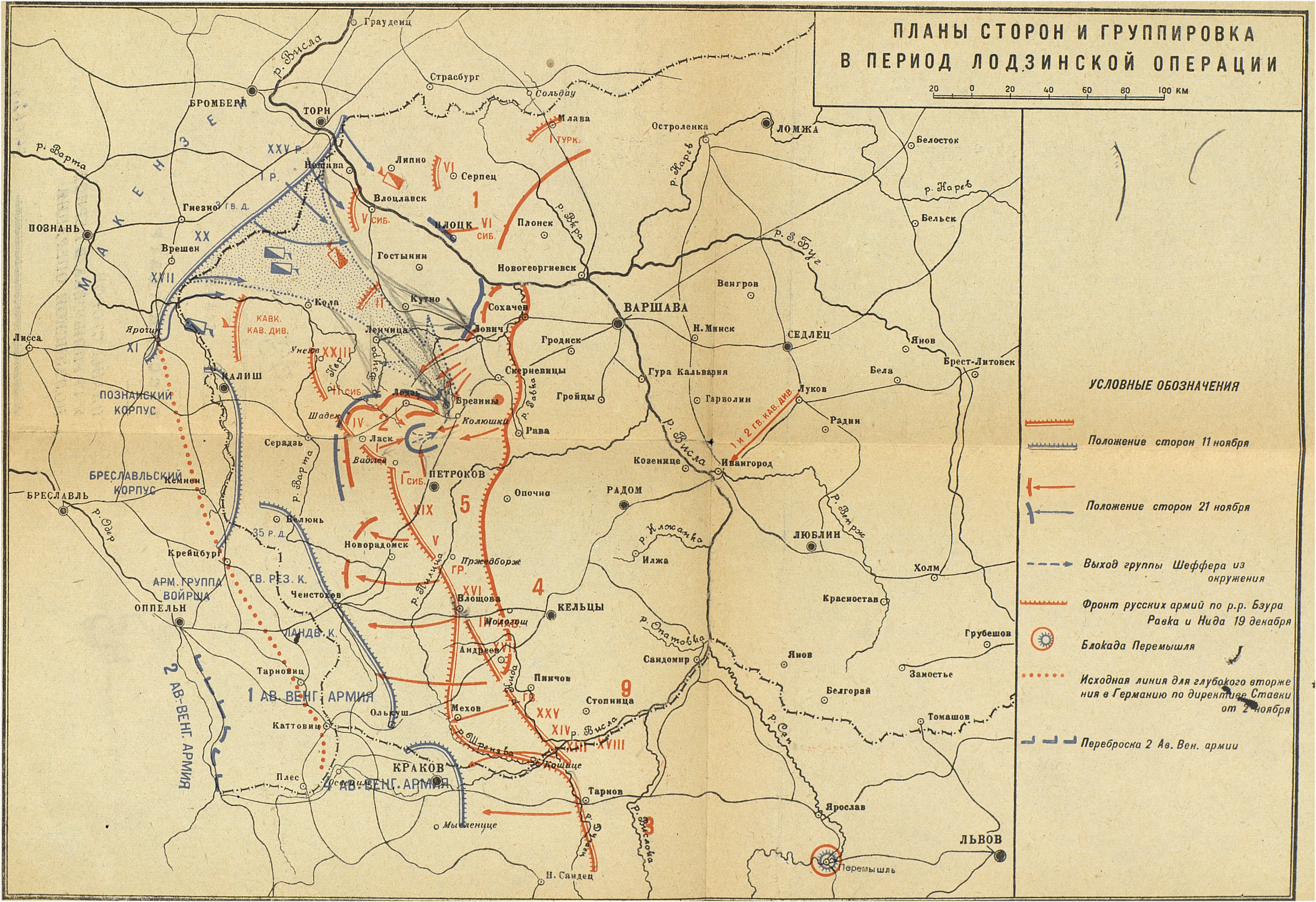 Кампания 1914 года. Русский театр. Планы сторон и группировка в период лодзинской операции