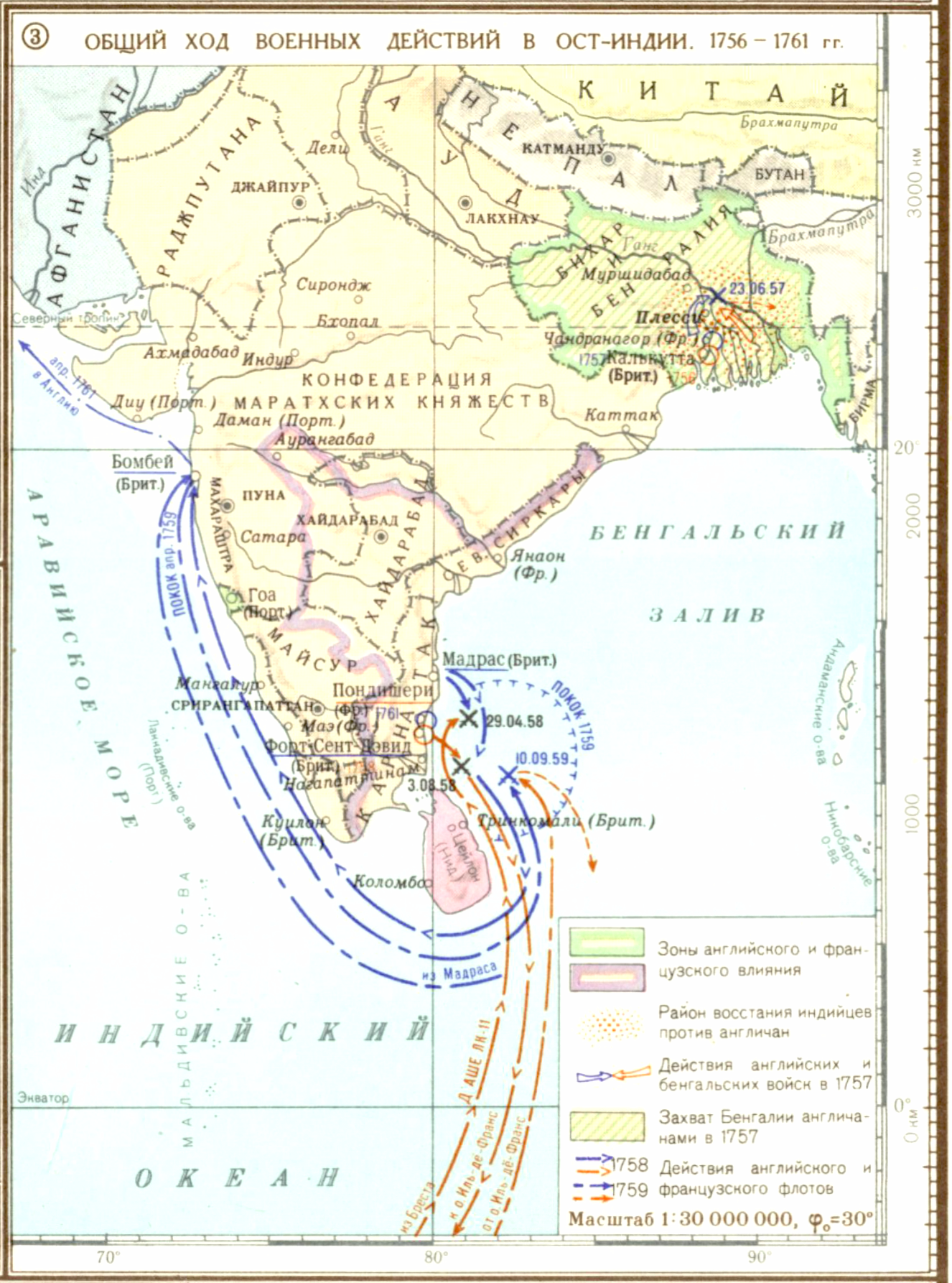 Семилетняя война 1756-1763 гг. Англо-французская борьба за колониальное господство. (З) Общий ход военных действий в Ост-Индии. 1756-1761 гг.