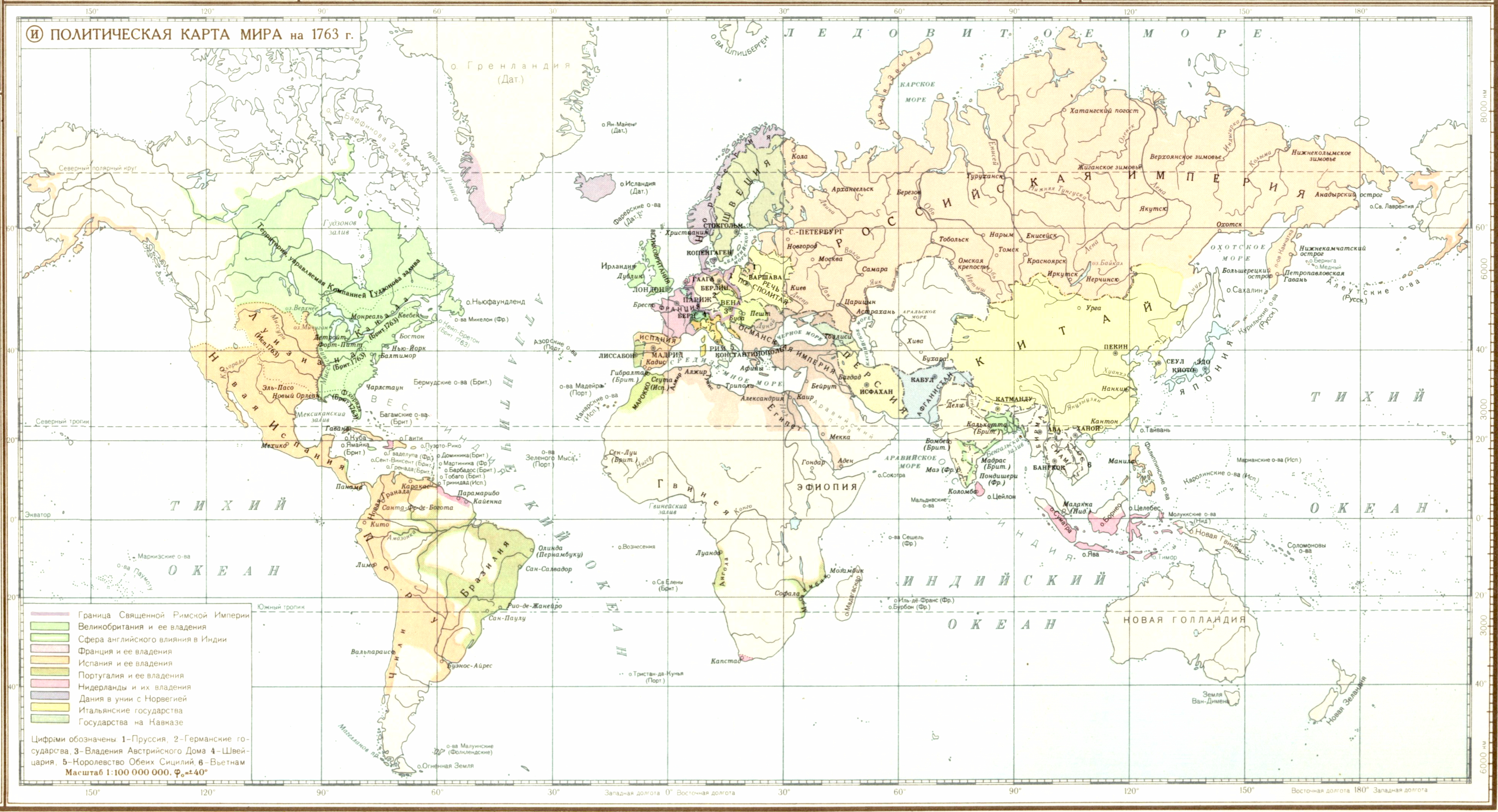 Семилетняя война 1756-1763 гг. (И) Политическая карта мира на 1763 г.