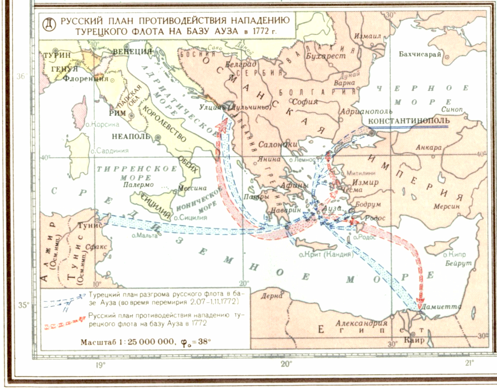 Русско-турецкая война 1768-1774 гг. (Д) Русский план противодействия нападению турецкого флота на базу Ауза в 1772 г.