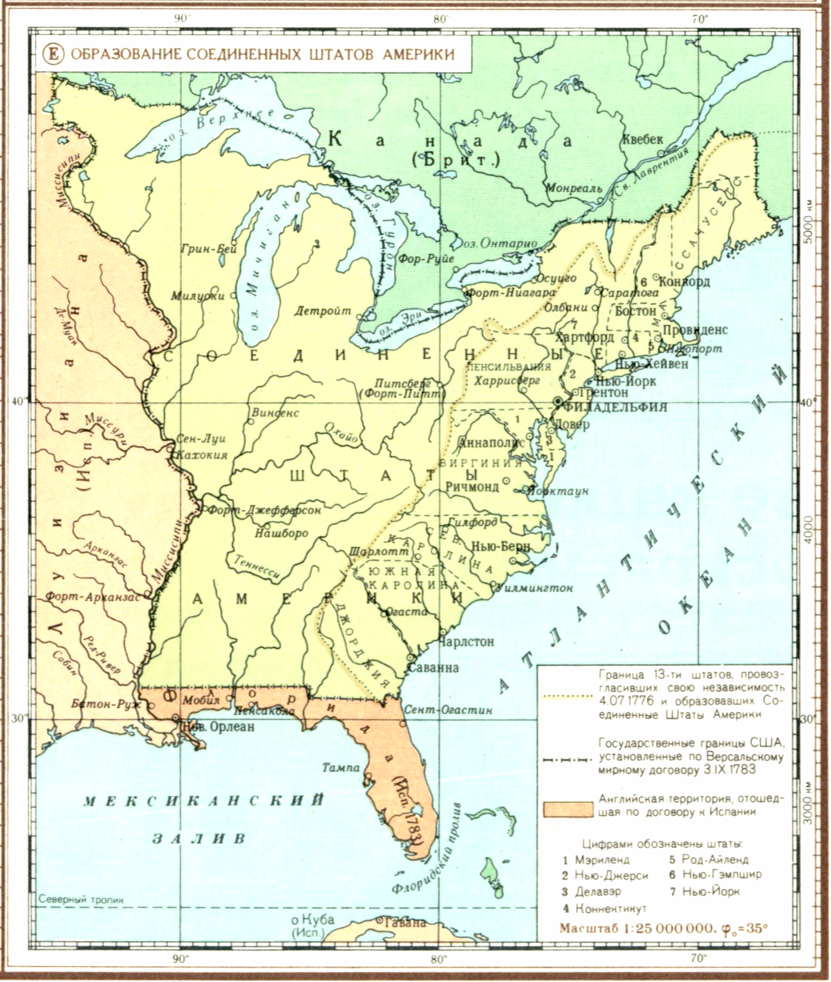 Война за независимость в Северной Америке 1775-1783 г. (Е) Образование Соединенных Штатов Америки.