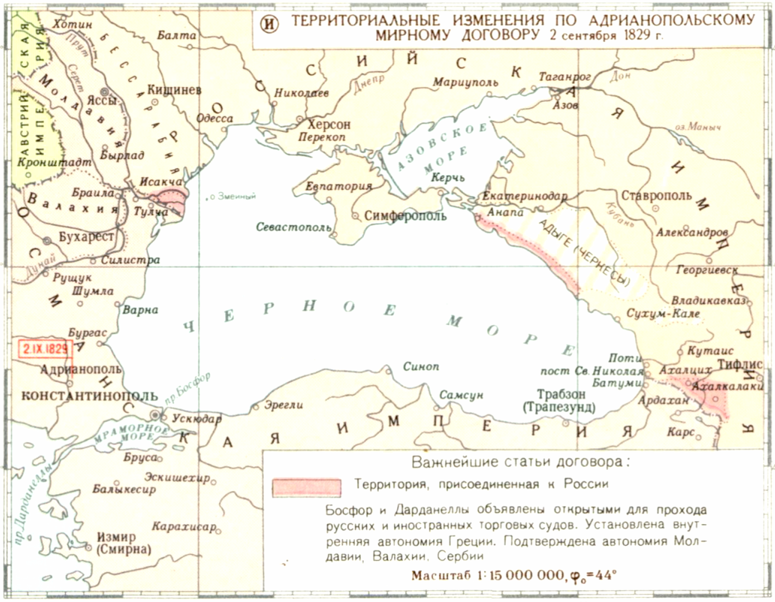 Русско-турецкая война 1828-1829 гг. (И) Территориальные изменения по Адриапольскому мирному договору 2 сентября 1829 г.