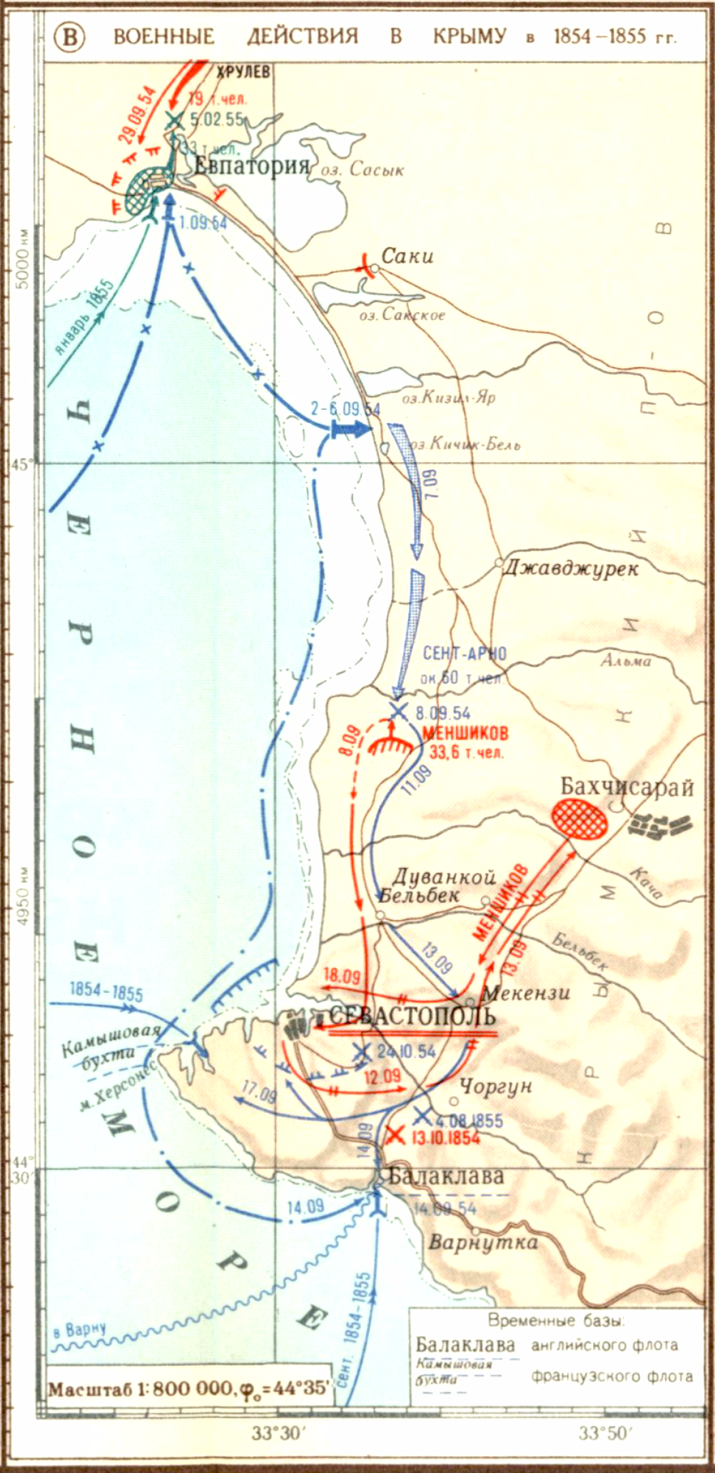 Крымская война 1853-1856 гг. Военные действия на Черном и Балтийском морях в 1853-1855 гг. Оборона Севастополя 1854-1855гг. (В) Военные действия в Крыму в 1854-1855 гг.