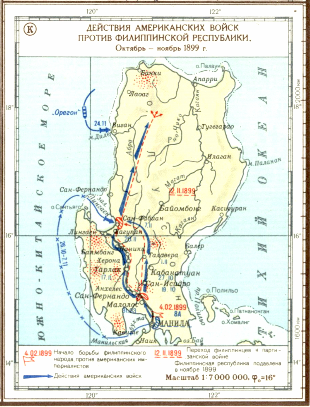 Испано-американская война 1898 г. (К) Действия американских войск против филиппинской республики. Октябрь - ноябрь 1899 г.