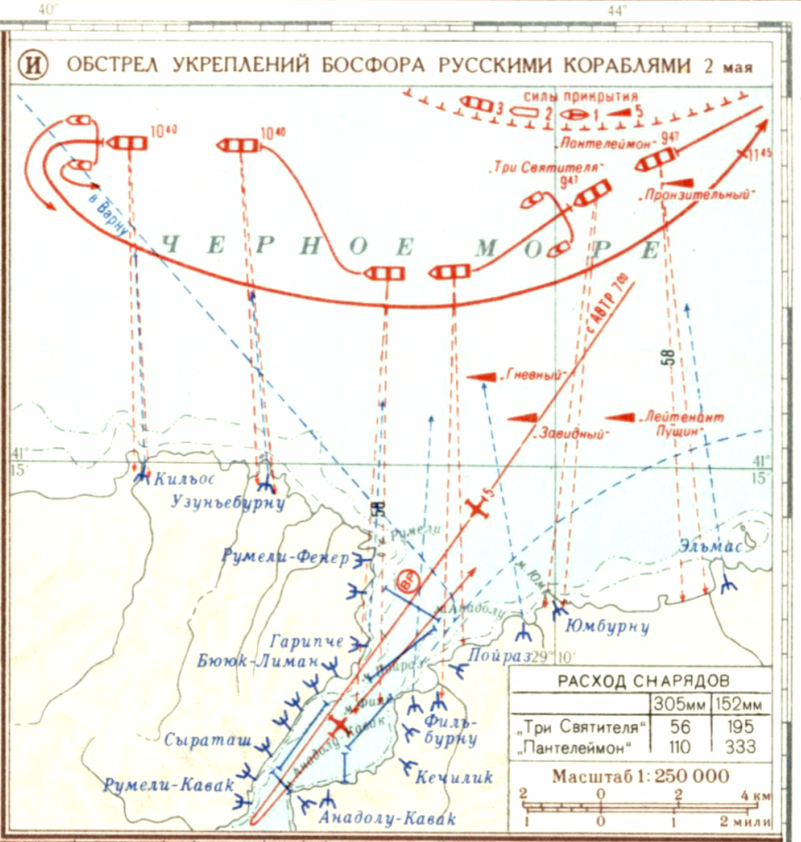 Первая мировая империалистическая война 1914-1918 гг. Кампания 1915 года. (И) Обстрел укреплений Босфора русскими кораблями 2 мая 1915 г.