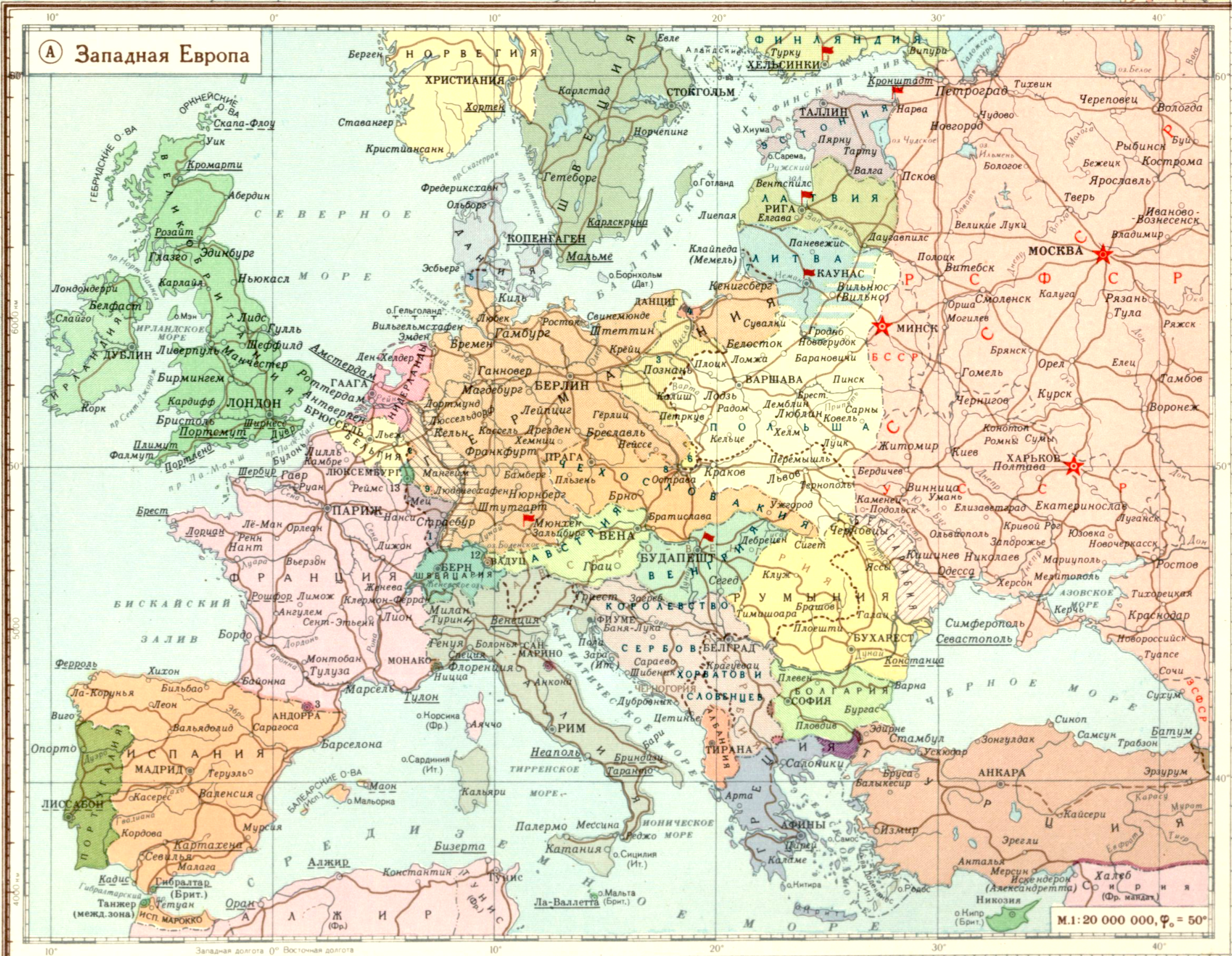 Политическая карта мира после Первой мировой империалистической войны 1914-1918 гг. (А) Западная Европа.