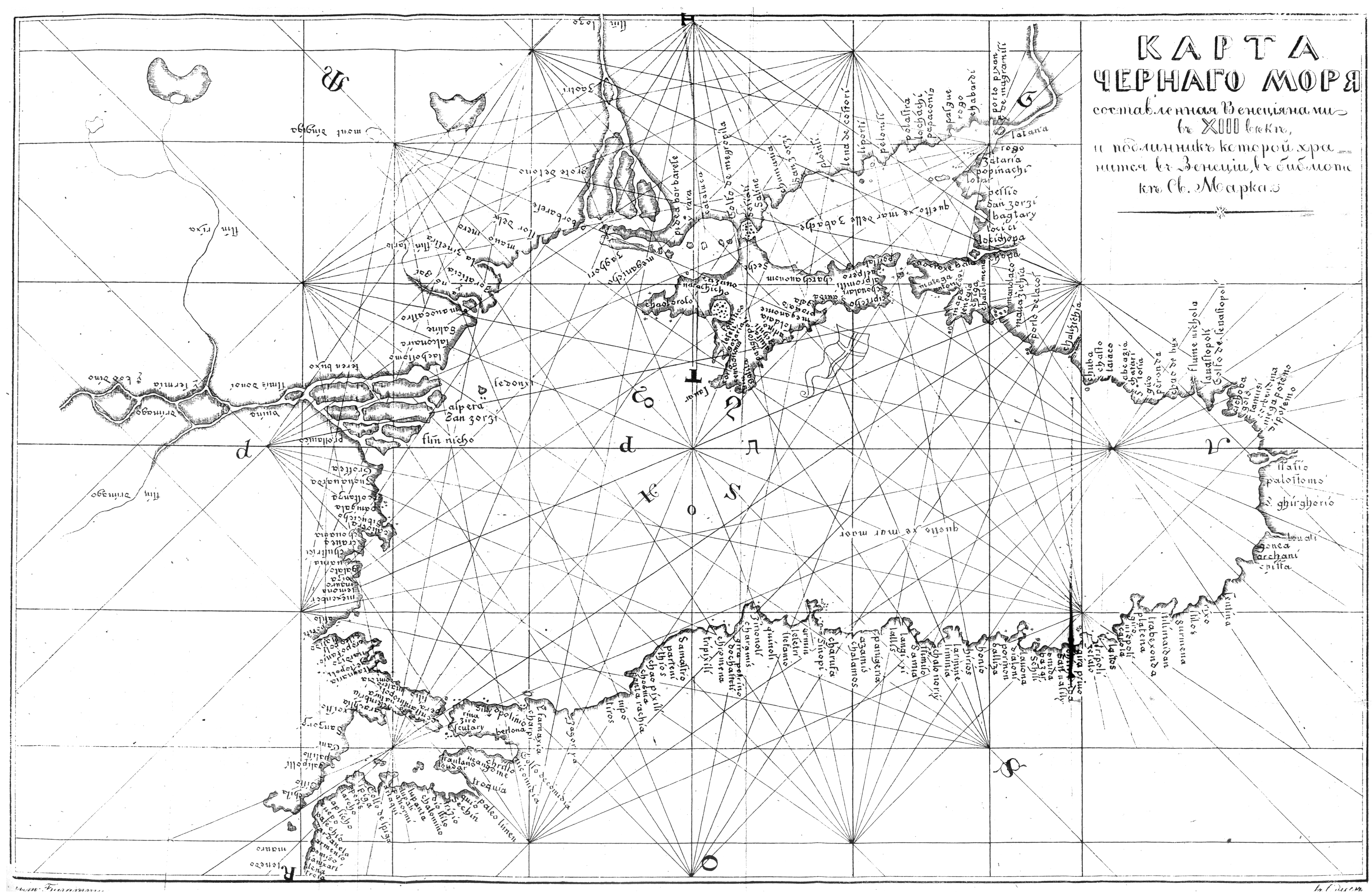 Черное море, карта составлена Венециаянами в XIII веке и подлинник которой хранится в Венеции, в библиотеке Св.Марка