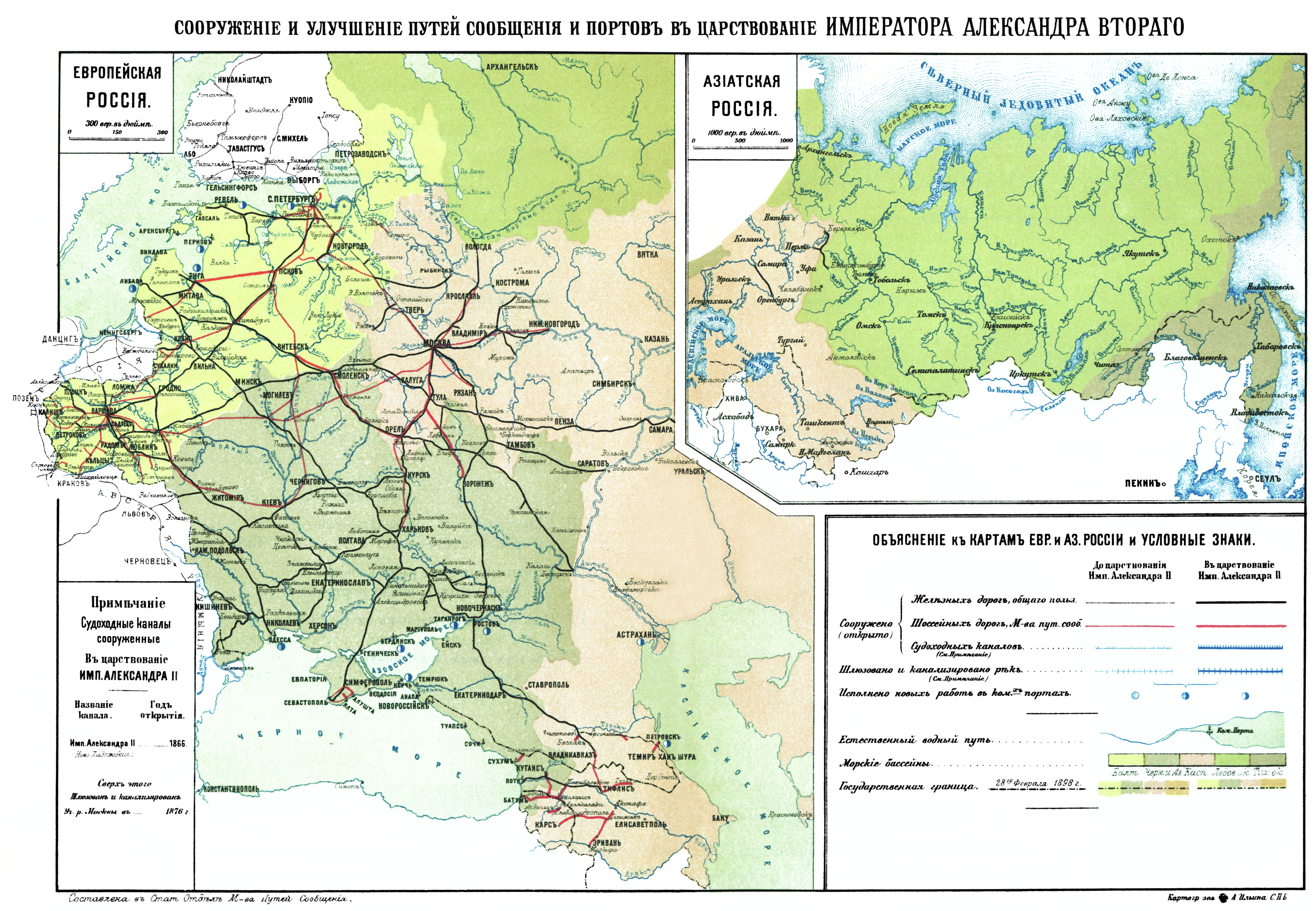 Сооружение и улучшение путей сообщения и портов в царствование Императора Александра Второго. Европейская часть России