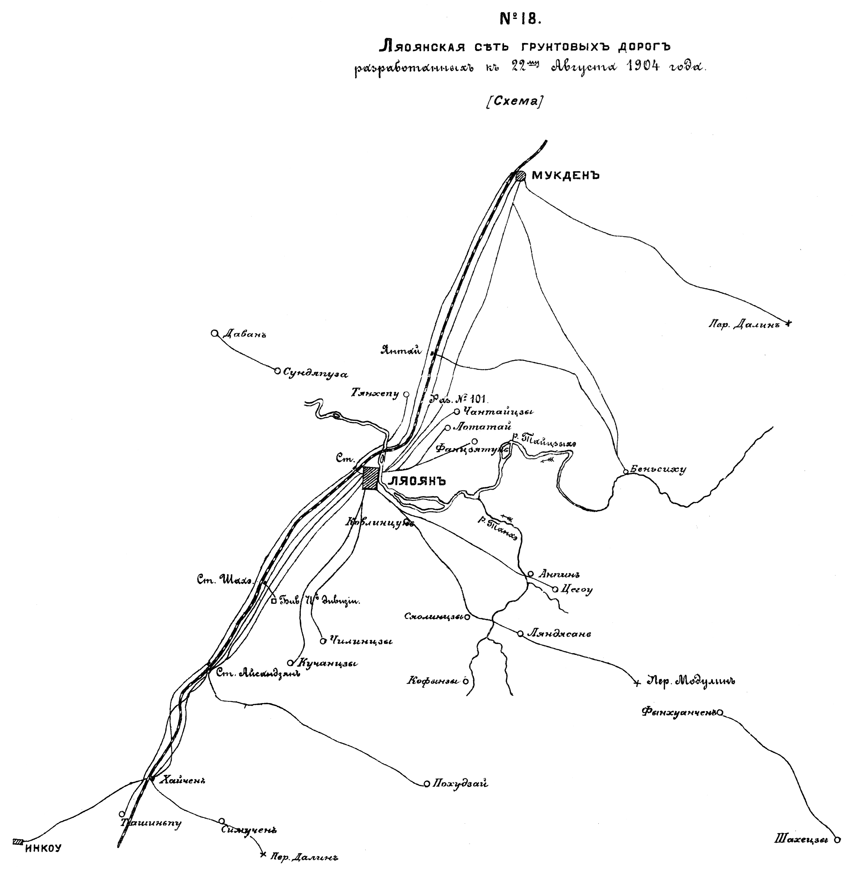 Ляоянская сеть грунтовых дорог, разработанных к 22 августа 1904 года