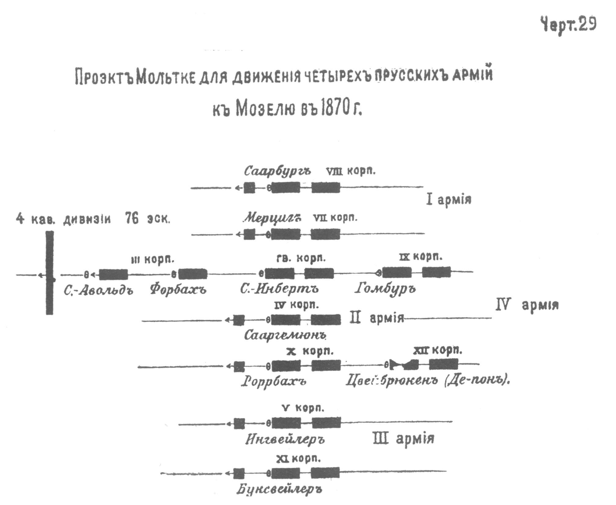 Проект Мольтке для движения четырех прусских армий к Мозелю в 1870 году