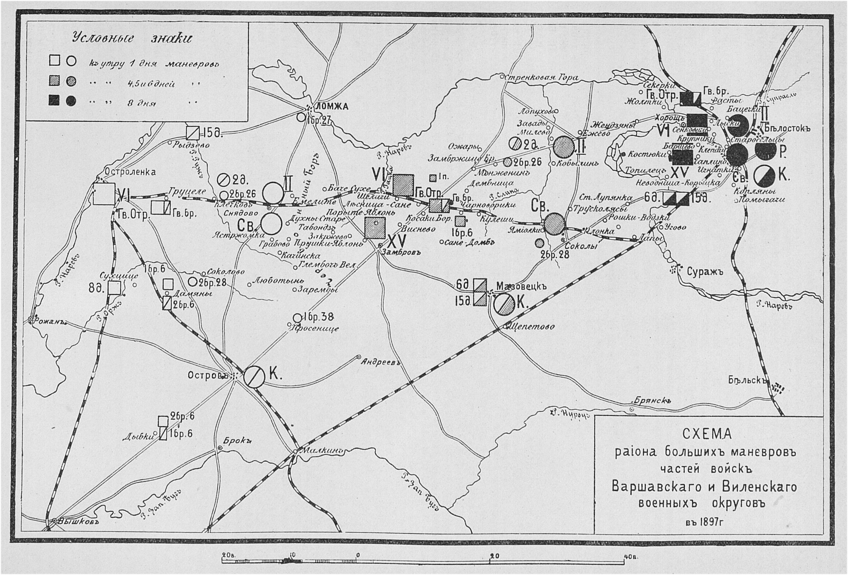 Схема района больших маневров частей войск Варшавского и Виленского военных округов в 1897 году