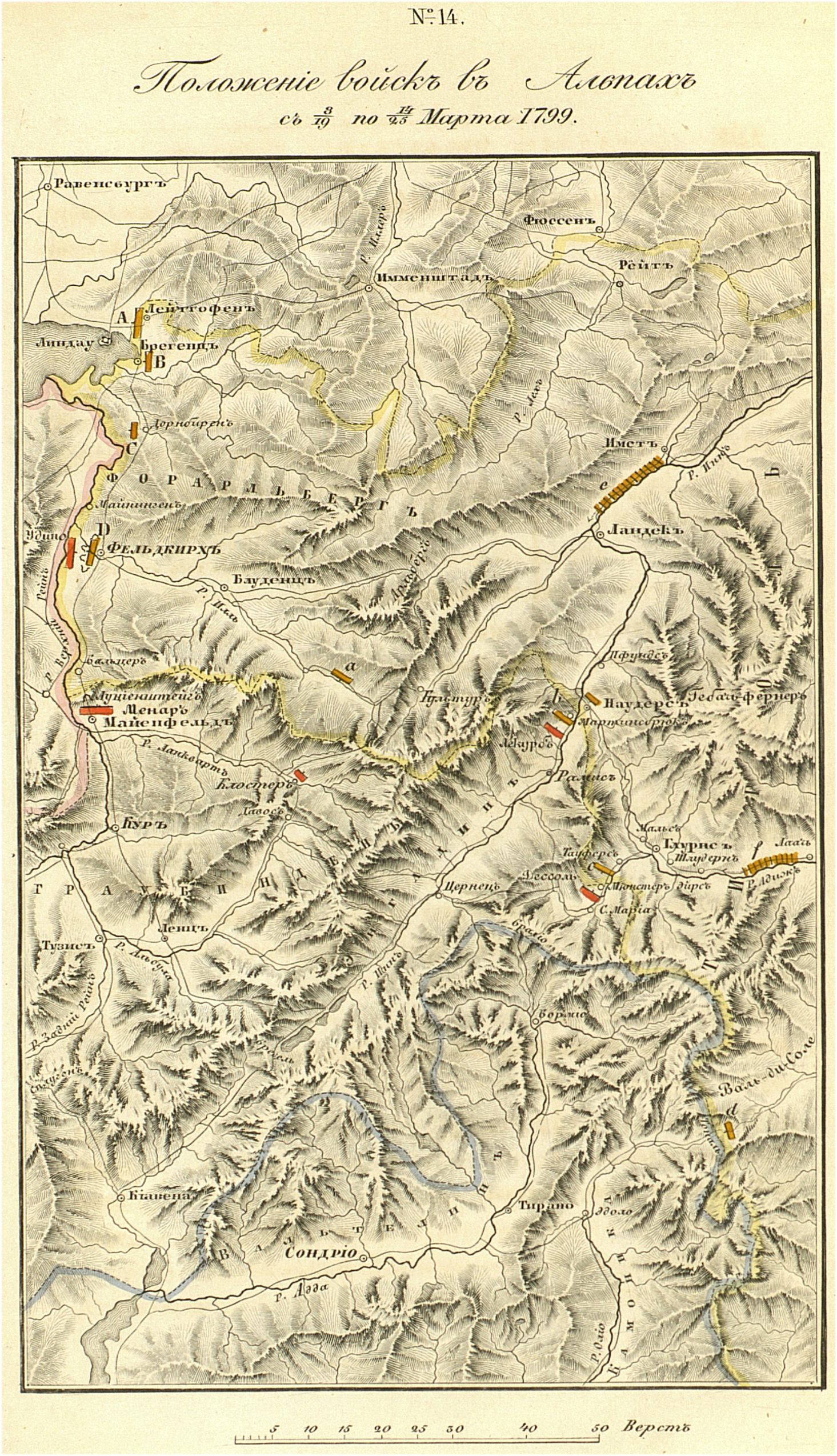 Положение войск в Альпах с 9 по 14 марта 1799 г.