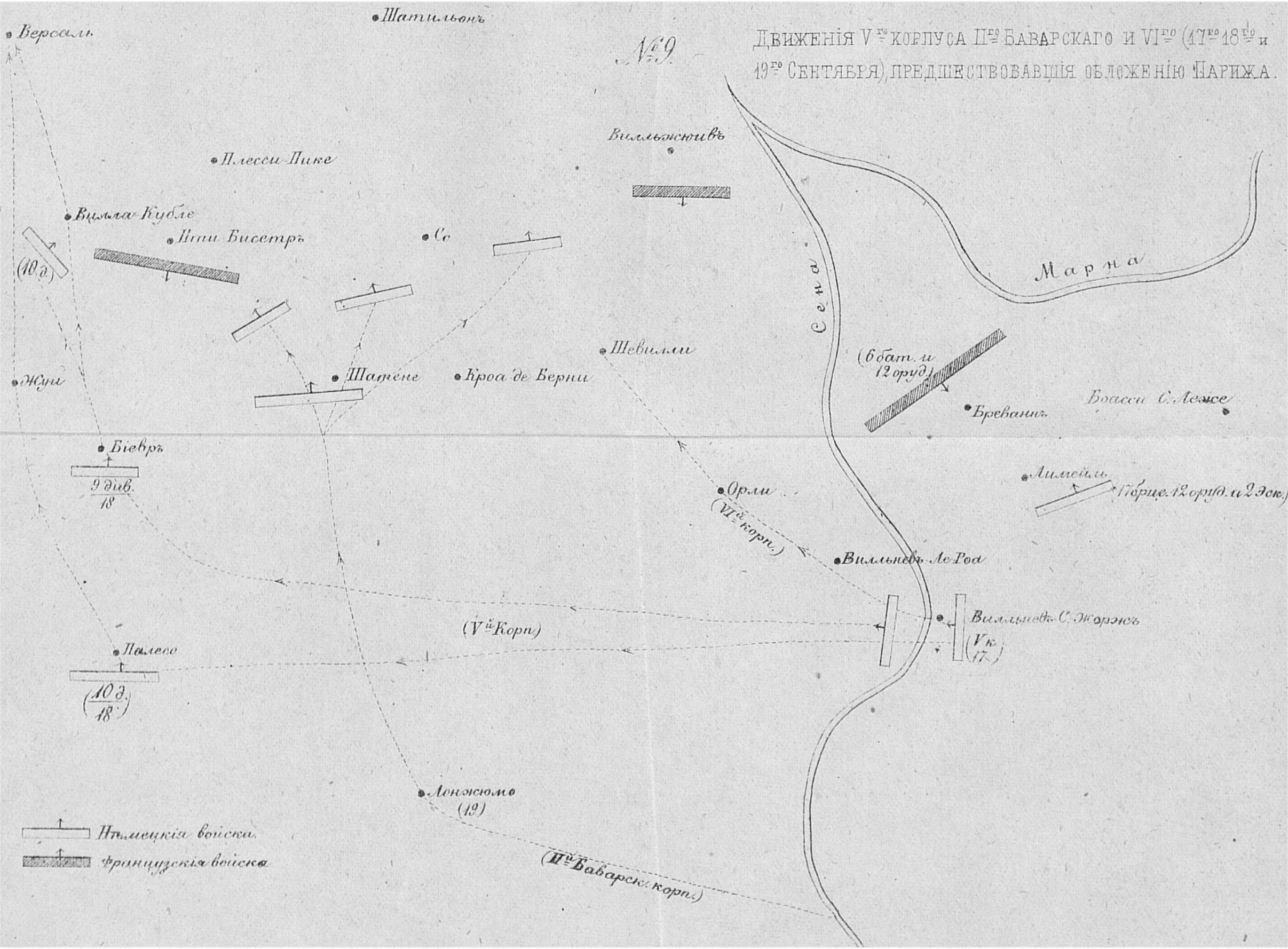 Движение V корпуса II-го Баварского и VI-го (17, 18 и 19 сентября), предшествовавшие обложению Парижа