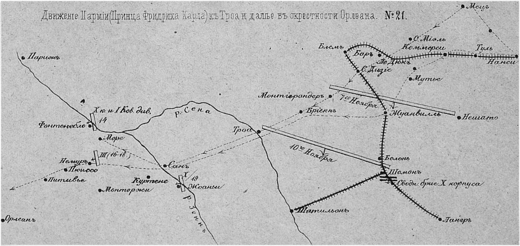 Движение II Армии (Принца Фридриха Карла) к Троа и дальше в окрестности Орлеана