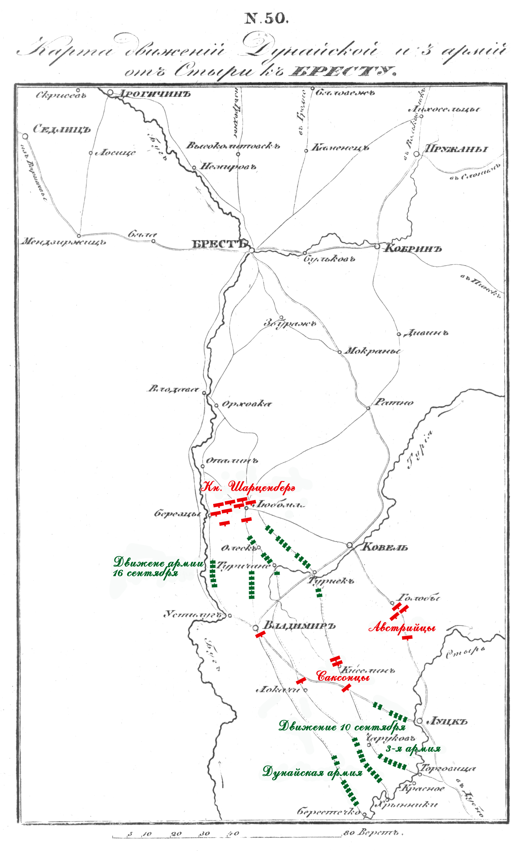 Карта движений Дунайской и 3-ей армии от Стыри к Бресту.