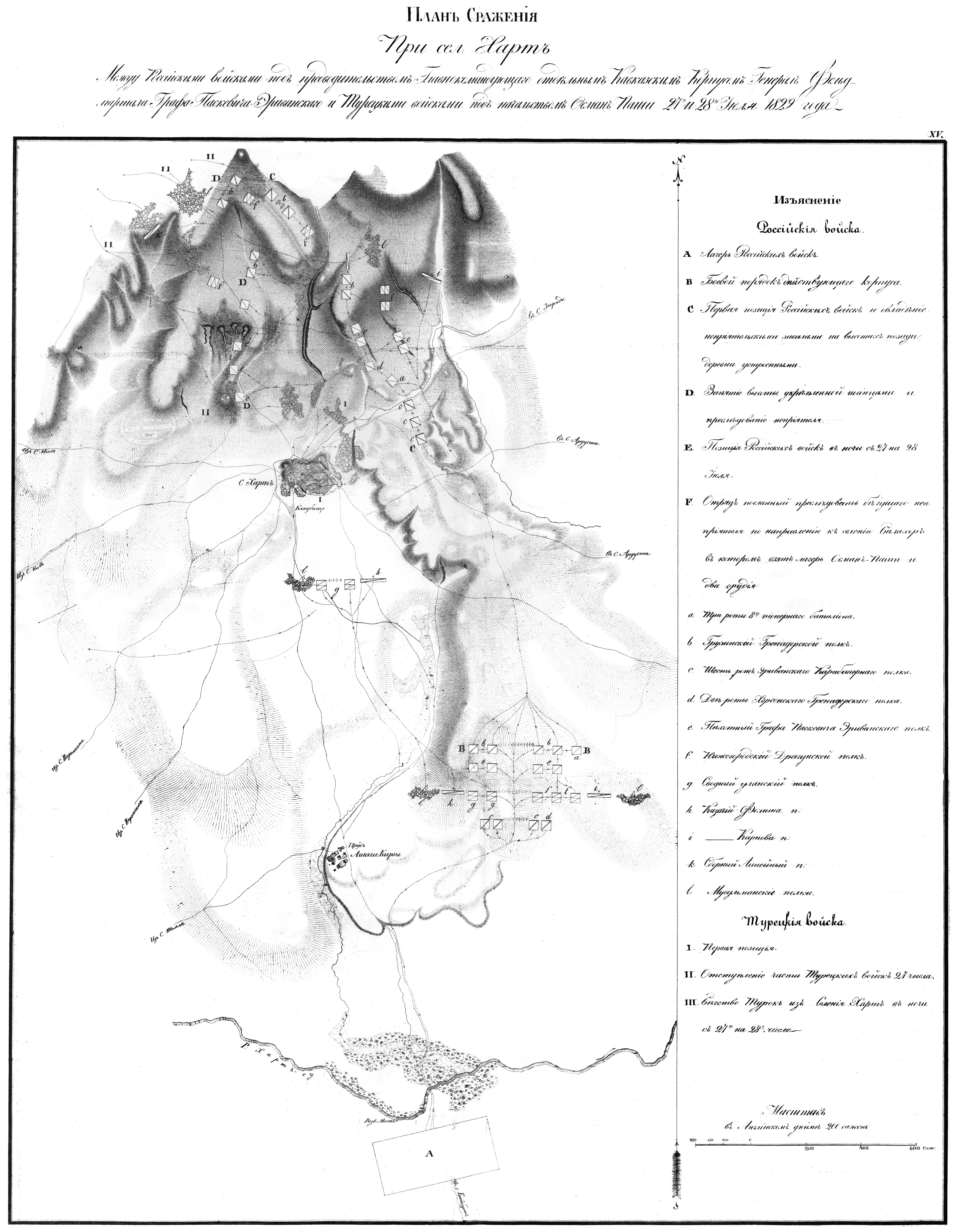 Сражение при селении Харт между Российскими войсками под предводительством Главнокомандующего отдельным Кавказским Корпусом Генерал Фельдмаршала Графа Паскевича Эриванского и Турецкими войсками под начальством Осман Паши 27 и 28 июля 1829 года