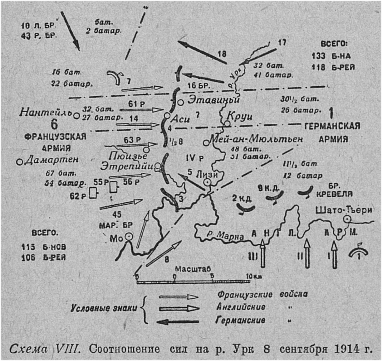 Соотношение сил к западу от реки Урк 8 сентября 1914 года
