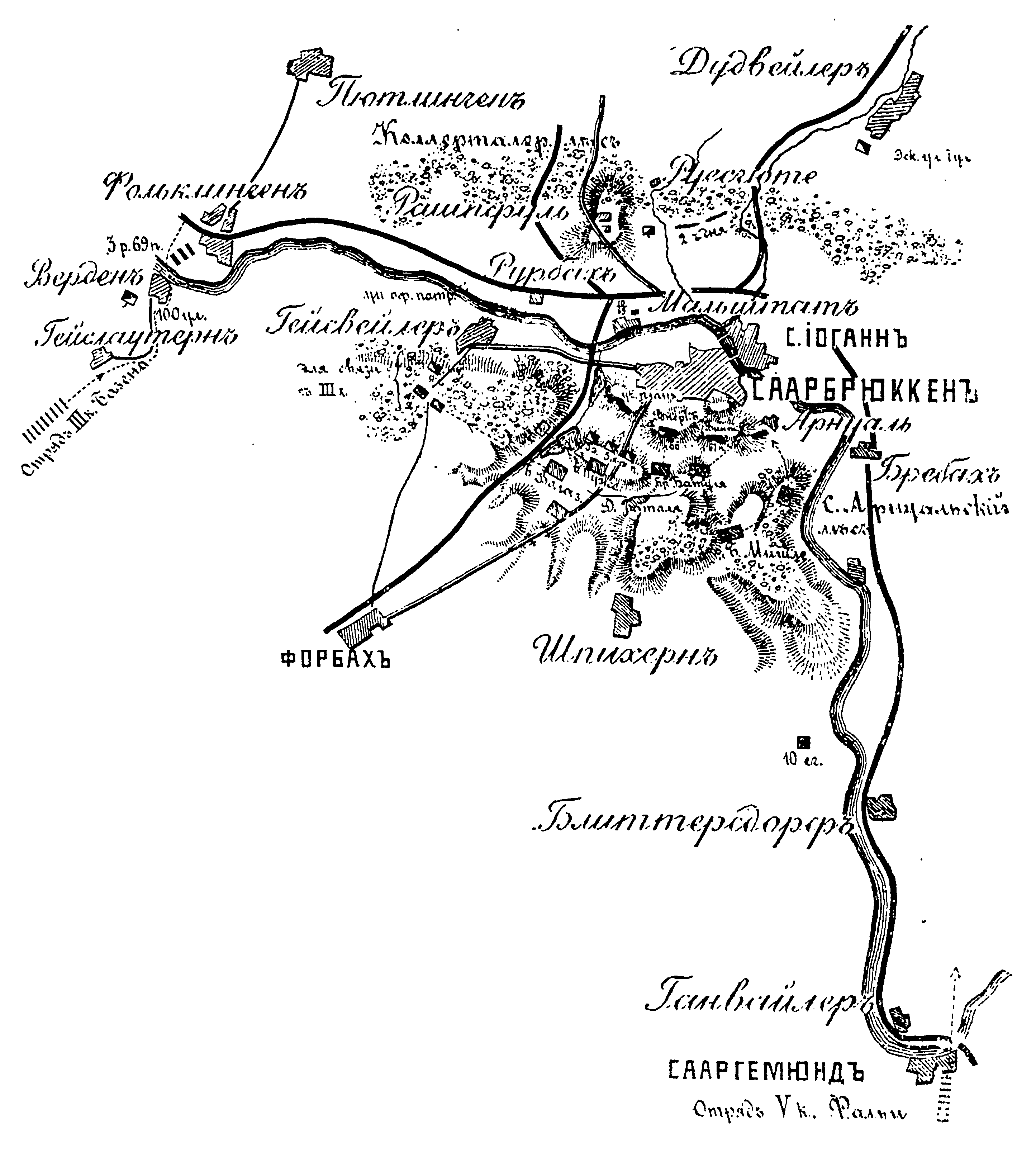 Карта-схема битвы при Фрауштадте, 13 (3) февраля 1706 года