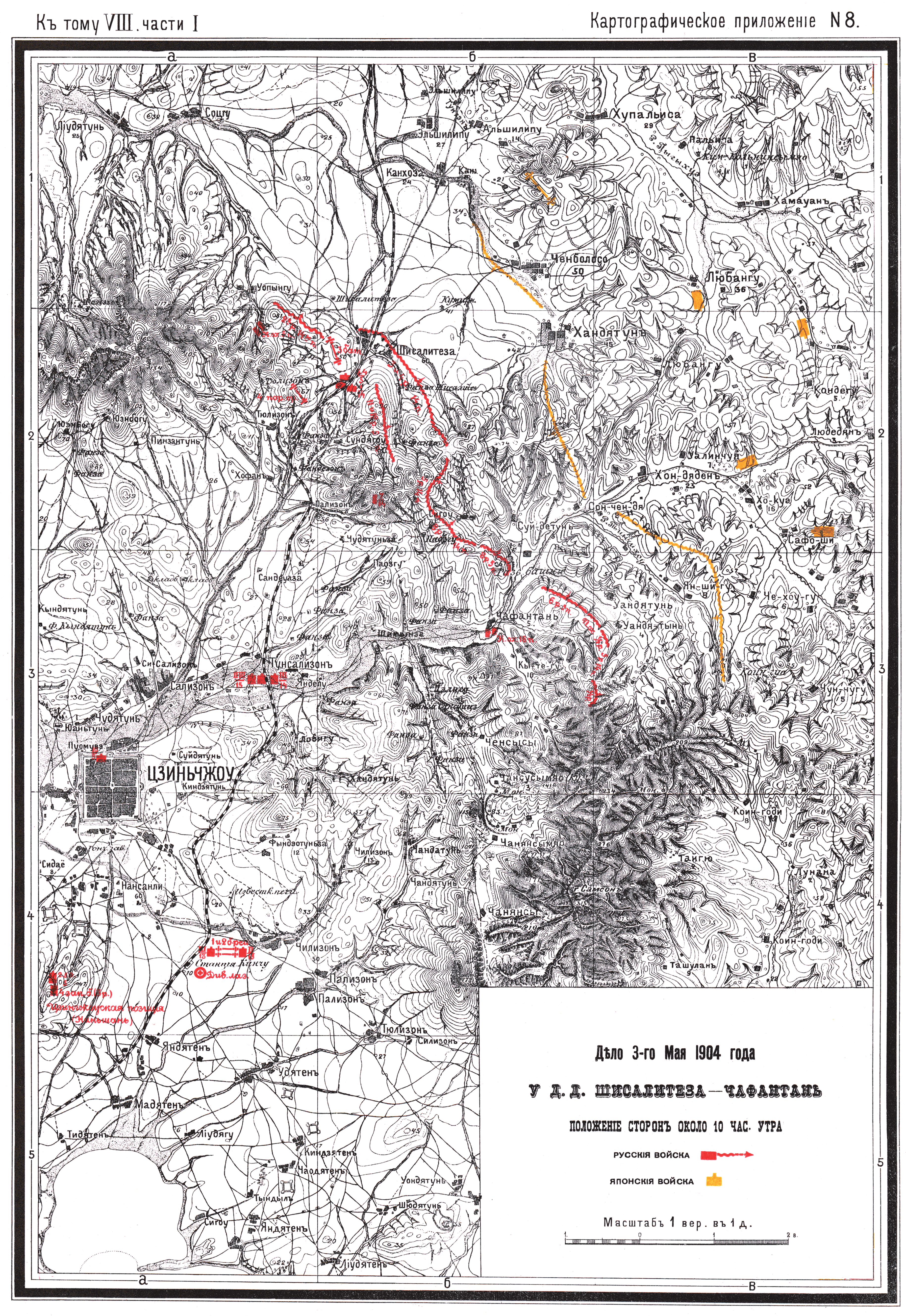 Дело 3 мая 1904 года у деревень Шисалитеза-Чафантань. Положение сторон около 10 часов утра