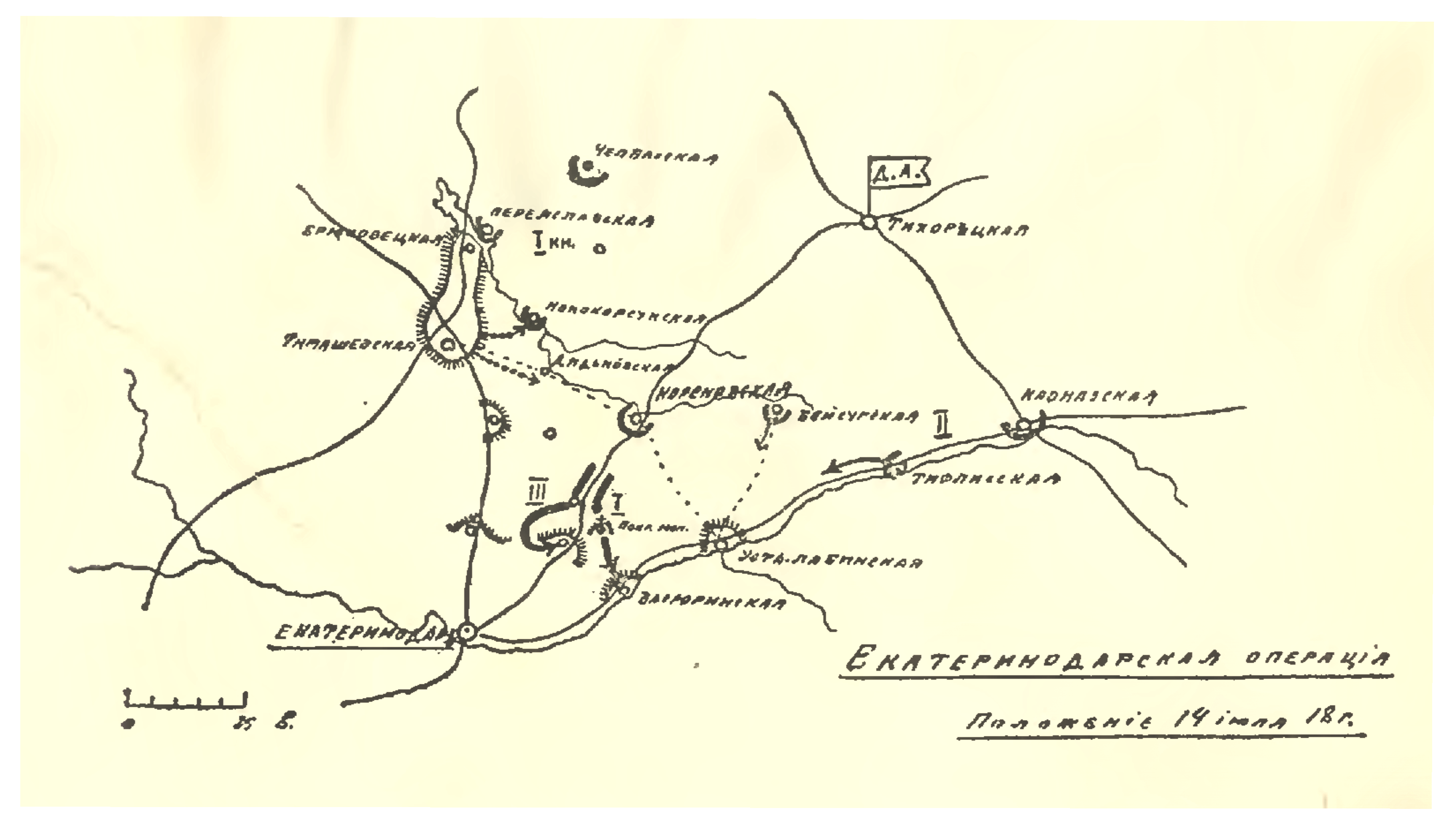 Екатеринодарская операция. Положение 14 июля 1918 года