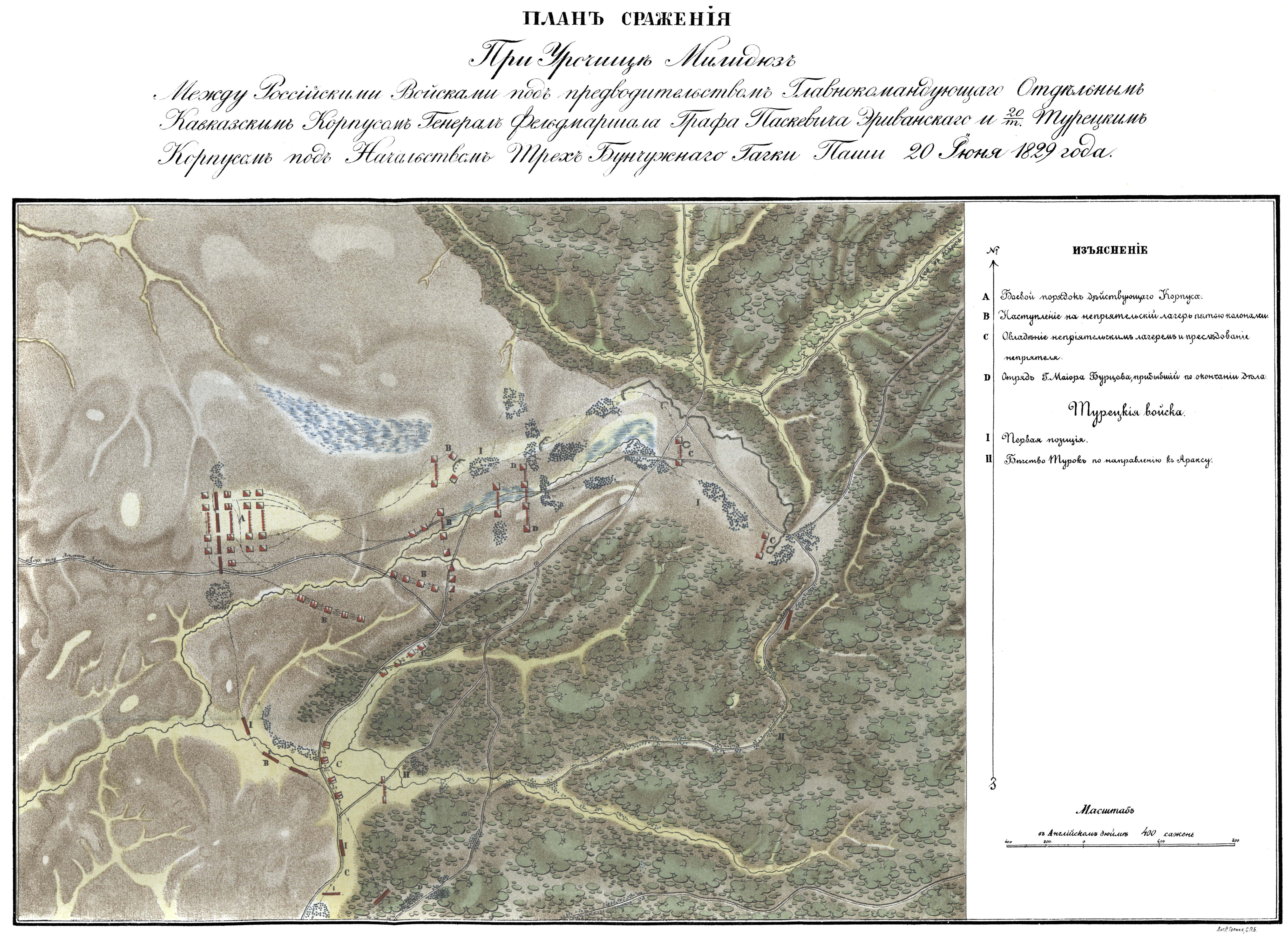 Сражение при Урочище Милидюз между Российскими войсками под предводительством Главнокомандующего отдельным Кавказским Корпусом Генерал Фельдмаршала Графа Паскевича Эриванского и 30 тысячным Турецким Корпусом под начальством Трех бунчужного Гачки Паши 20