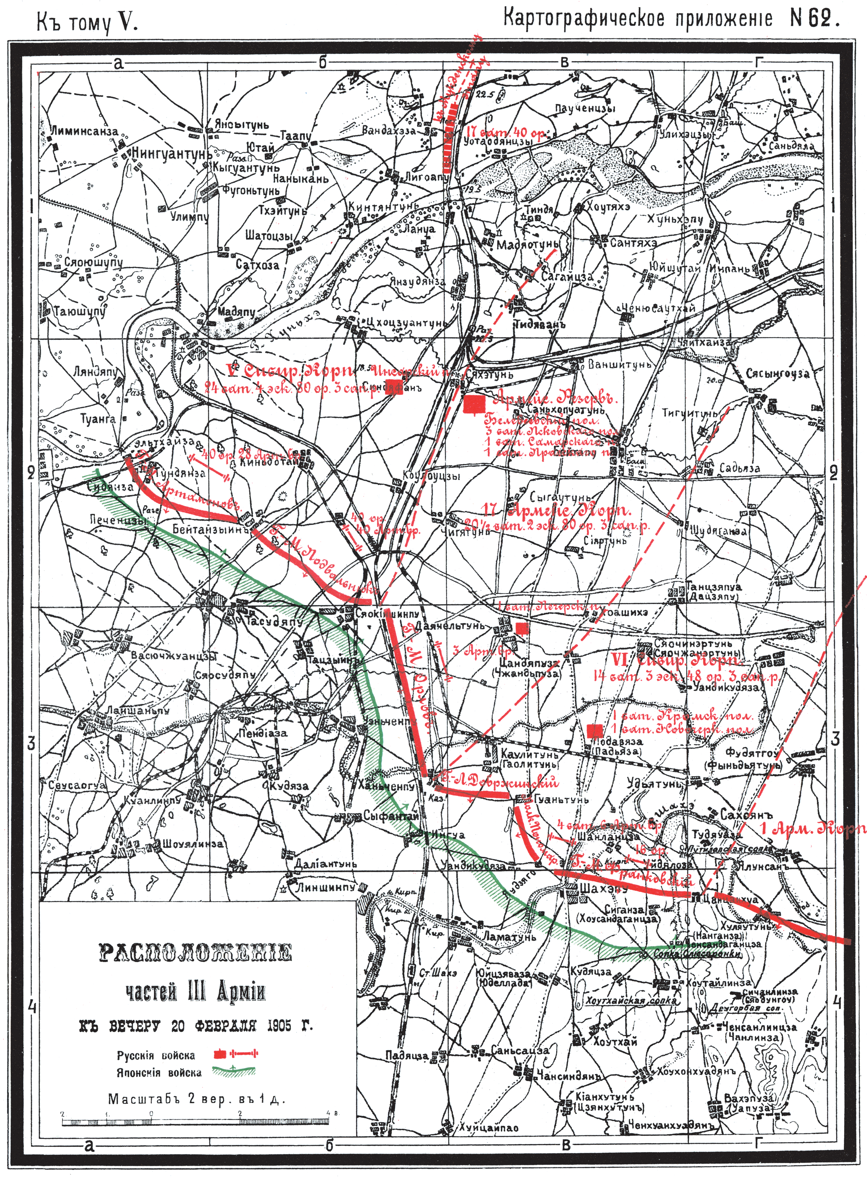 Расположение частей III Армии к вечеру 20 февраля 1905 года