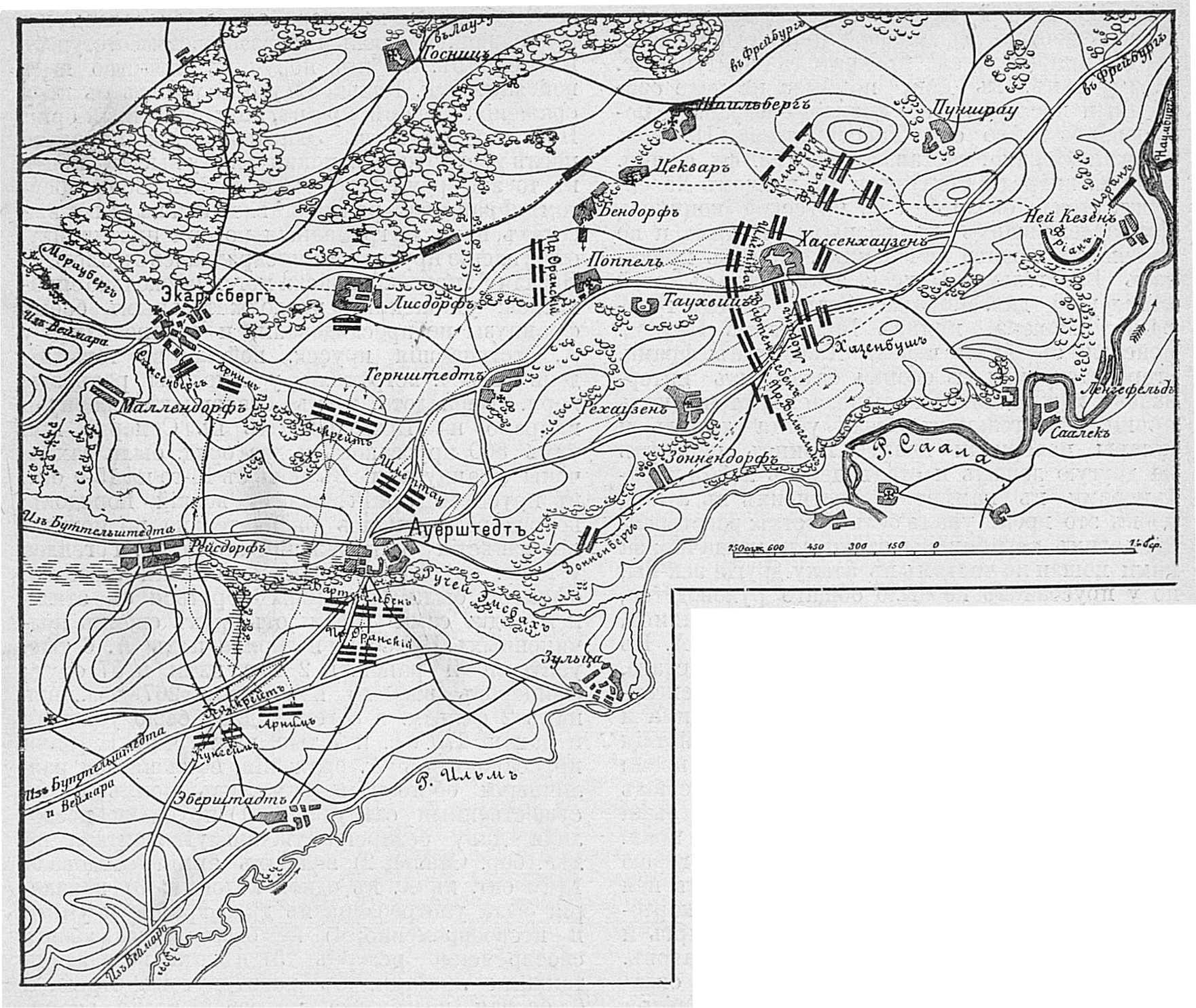 Карта-схема битвы при Фрауштадте, 13 (3) февраля 1706 года