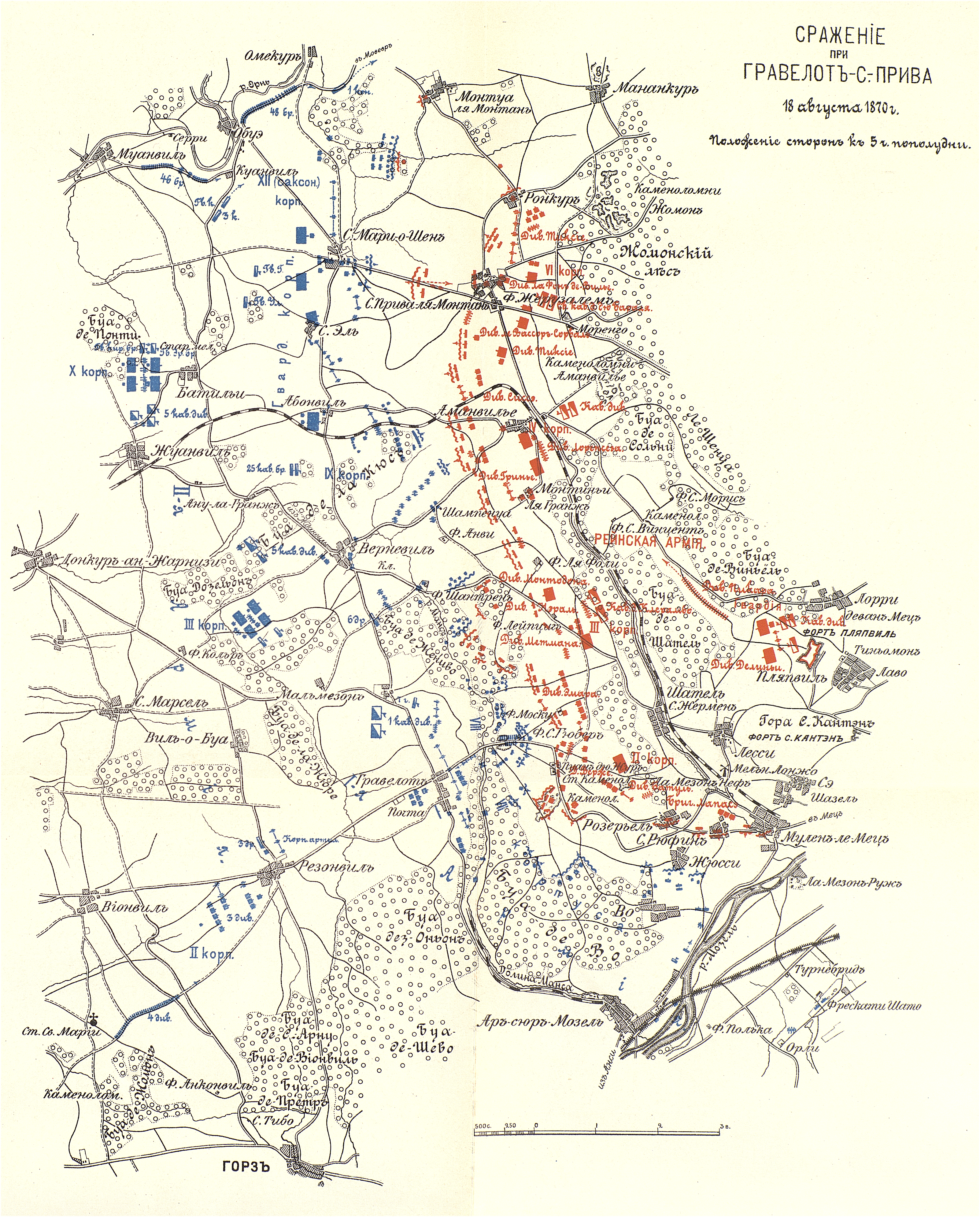 Сражение при Гравелот - Сен-Прива 18 августа 1870 года. Положение сторон к 5 часам пополудни. Схема 2